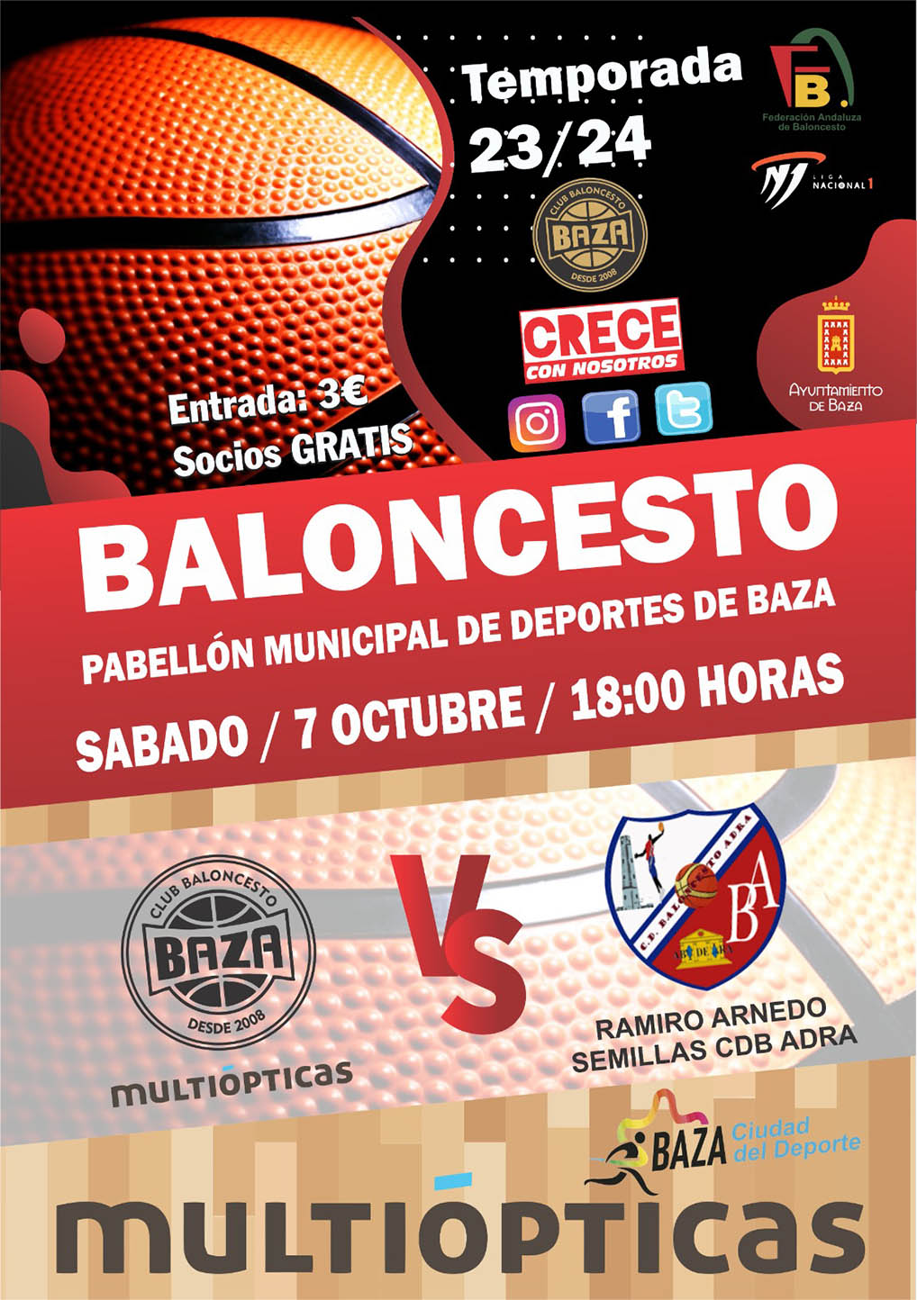 Tras el debut en campa ajena, el Multiópticas Baza vuelve al Pabellón Municipal para recibir al  CDB Adra, en la segunda jornada liguera. Un conjunto bastetano que debutamos en casa y que vuelve con la Liga Nacional de la Federación Andaluza de Baloncesto, al pabellón del Parque de la Constitución, recibiendo a un recién ascendido que se ganó tal derecho tras jugar la final provincial de Almería contra CB El Ejido.
