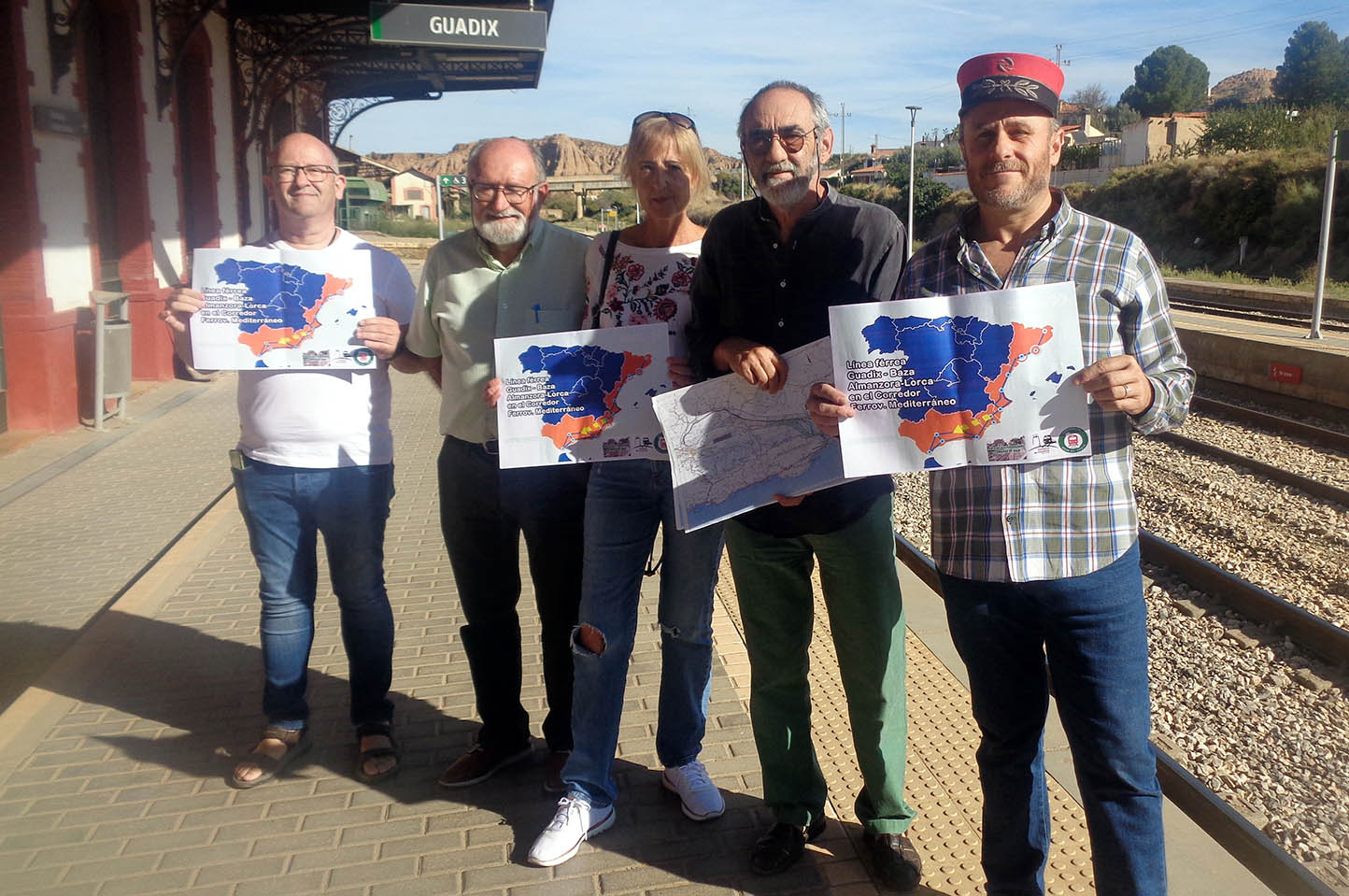 Los colectivos ferroviarios granadinos han dado una rueda de prensa conjunta en la estación de Guadix para denunciar la situación de abandono de las conexiones ferroviarias en la provincia y reclamar prioridad en la reapertura de la línea férrea Guadix Baza Almanzora Lorca.