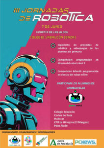 Mañana viernes se celebran unas muy interesantes III Jornadas de Robótica del Colegio Jabalcón organizadas por el propio centro y el AMPA Jabalbasti, con puertas abiertas. El próximo viernes 7 de junio se celebrará esta interesante actividad de las III Jornadas de Robótica, en el Colegio Jabalcón, en lo que será una jornada a todo el público que lo desee y que se iniciará a las seis de la tarde.