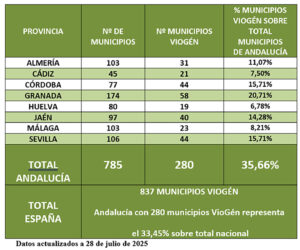 Actualmente, 280 municipios andaluces —el 35,6% del total— forman parte del Sistema VioGén mediante convenios de colaboración con el Ministerio del Interior. Estos acuerdos permiten que las policías locales trabajen coordinadamente con la Policía Nacional y la Guardia Civil para una protección más eficaz de las víctimas.