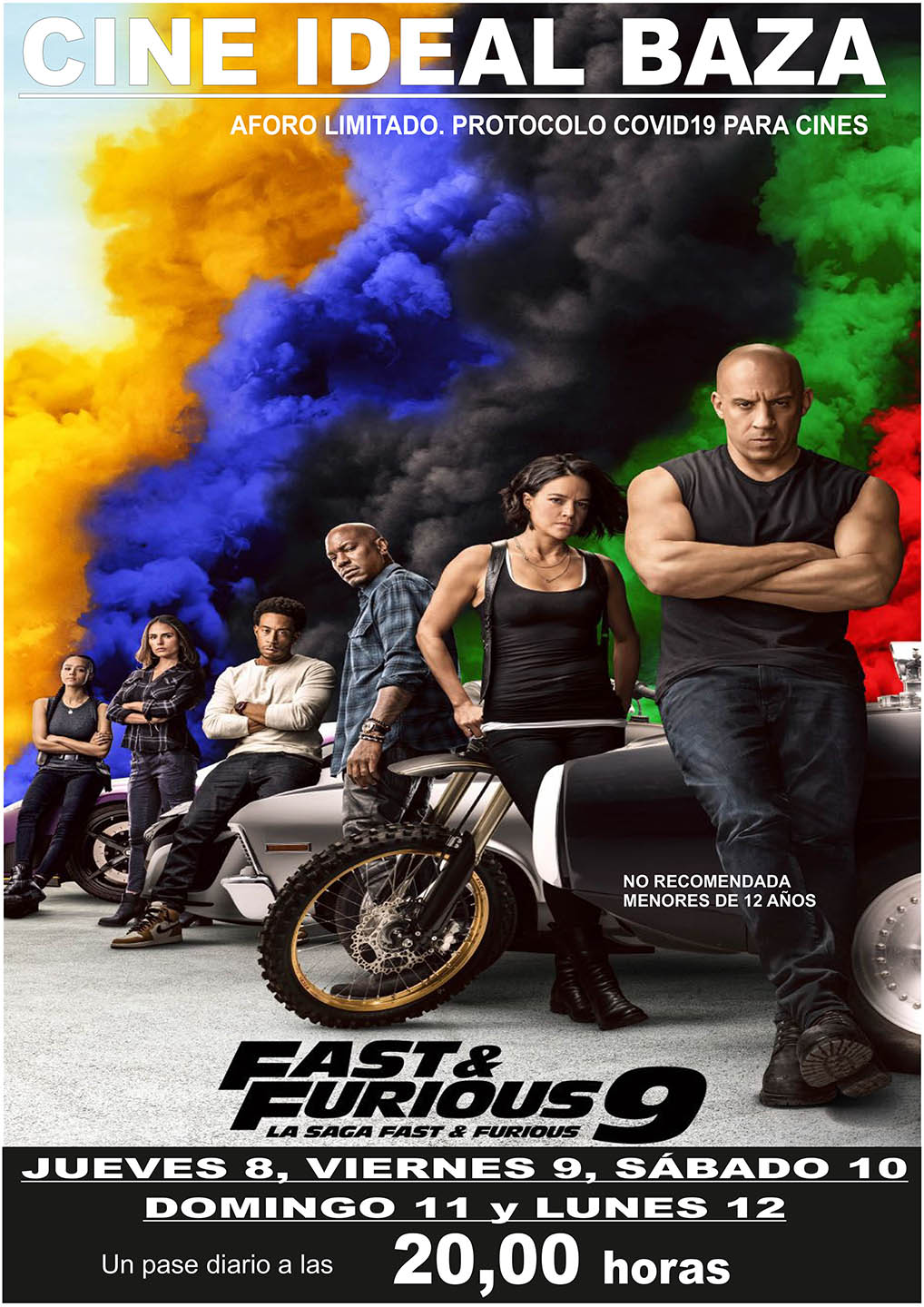 Cine Ideal Baza proyecta este fin de semana la película Fast & Furious 9. Desde el jueves 8 al lunes 12 de julio, en un pase diario a las 20,00 horas, se proyecta la novena entrega de esta saga.