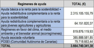 La distribución de las cantidades abonadas, por regímenes de ayuda, es la siguiente: