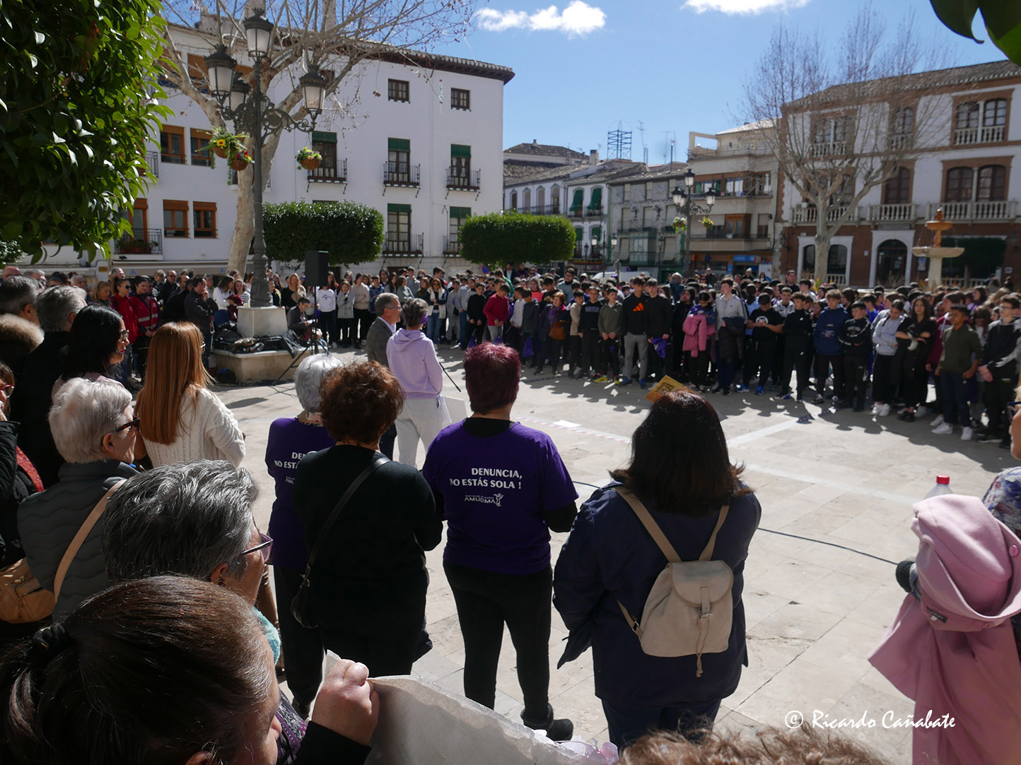 Los centros educativos y asociaciones fueron protagonistas en la conmemoración del Día Internacional de la Mujer en Baza. Corporación municipal, comunidad educativa, colectivos y asociaciones, cuerpos y fuerzas de seguridad y ciudadanía en general se daban cita, ayer por la mañana, en la Plaza Mayor de Baza, para conmemorar el 8 de Marzo, Día Internacional de las Mujeres, con un acto plagado de mensajes reivindicativos que dejaron patente el compromiso de la sociedad bastetana para seguir avanzando en ese largo camino, que todavía queda por delante, para alcanzar una igualdad real y efectiva.