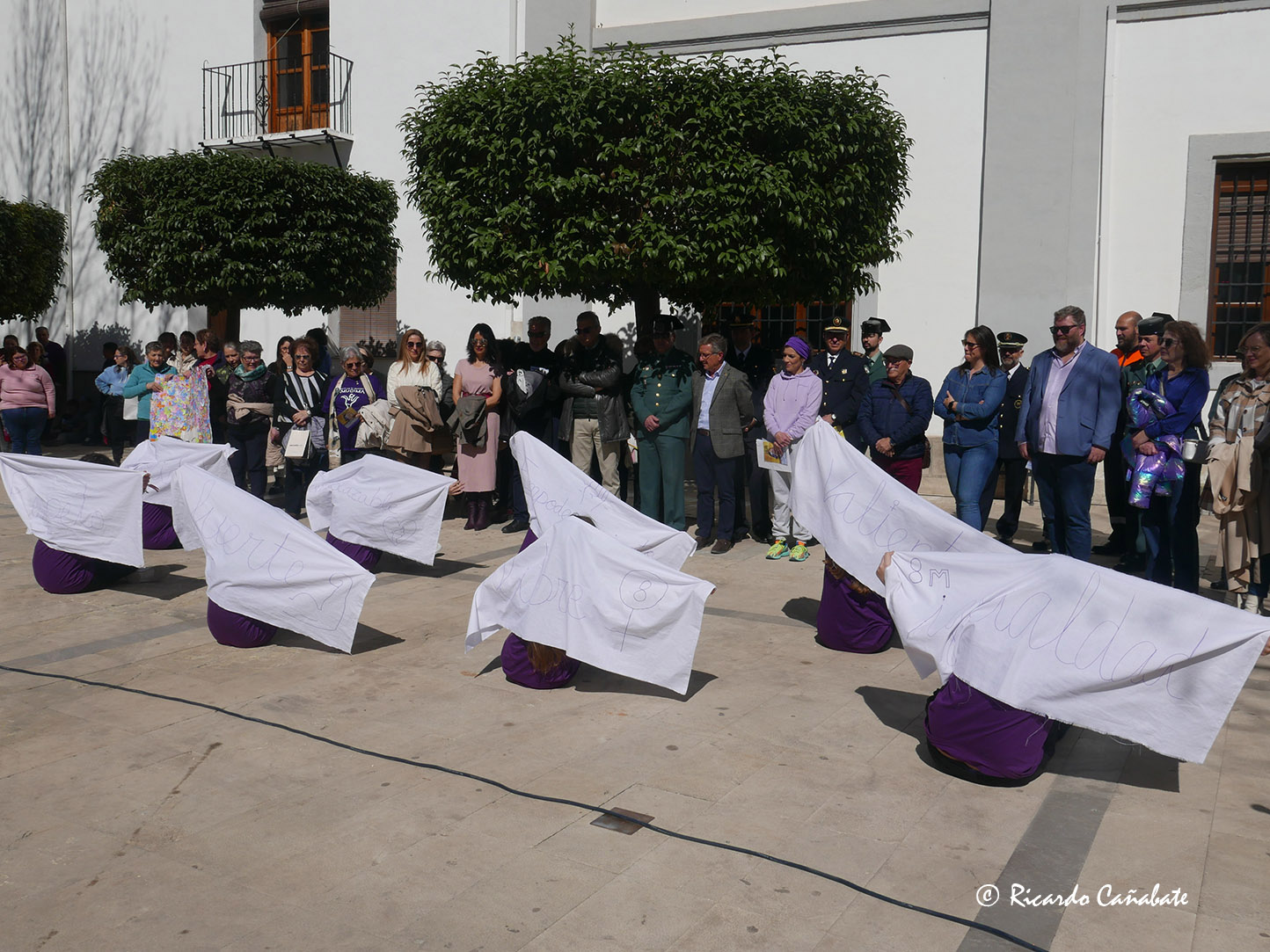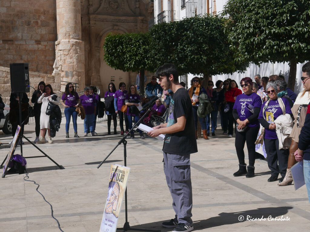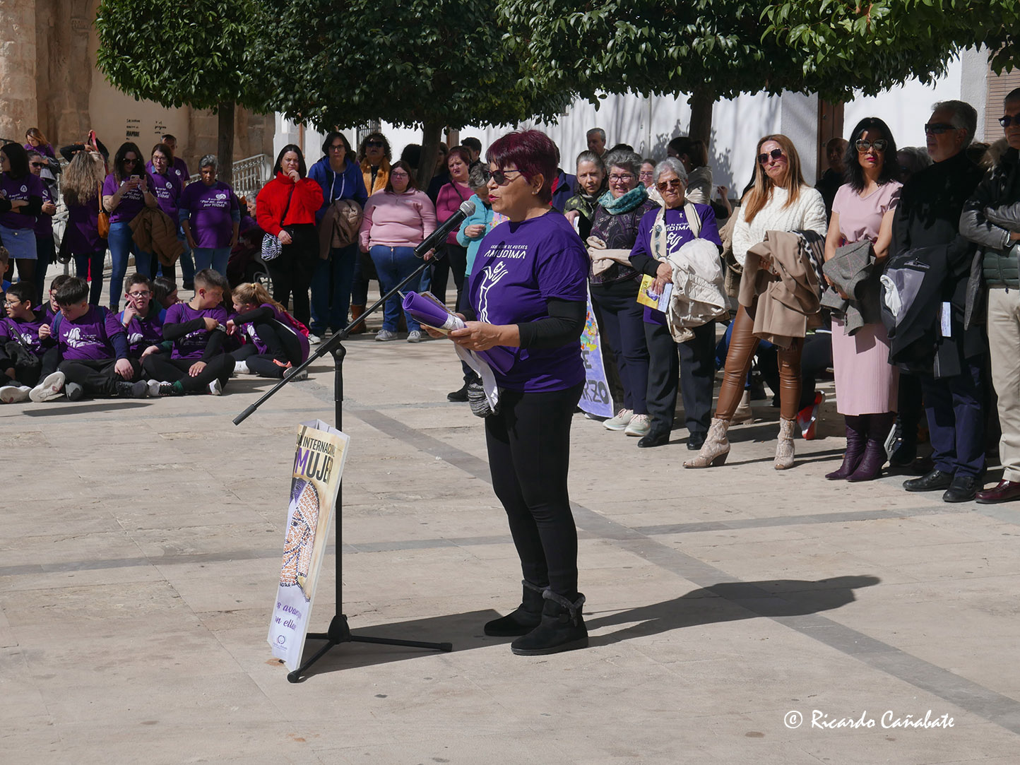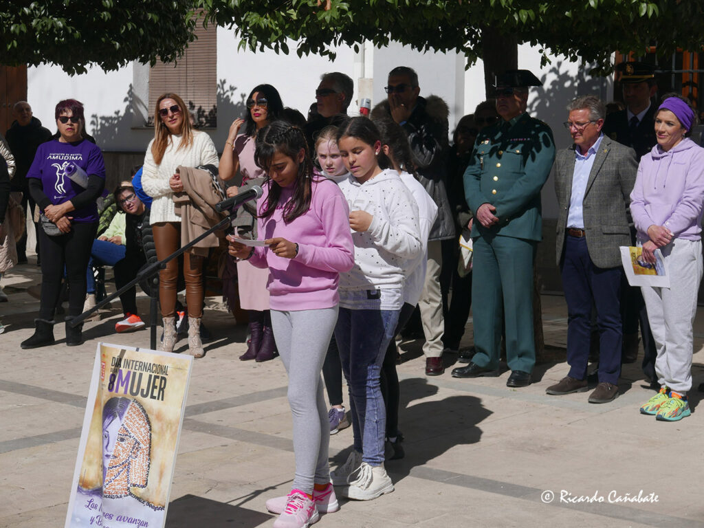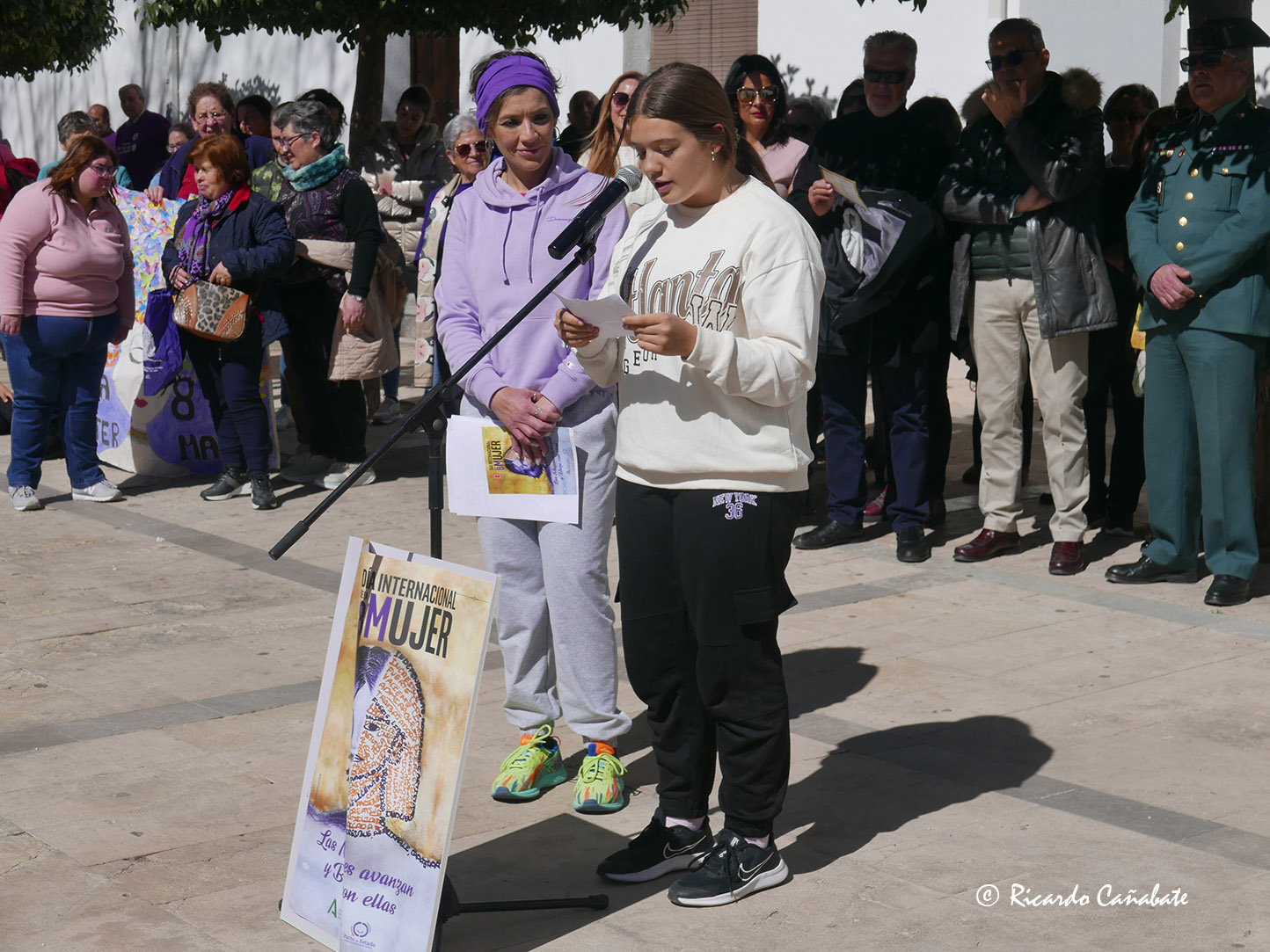 Adrián Dengra dio lectura a un poema escrito especialmente para este día. Después, alumnado del colegio San José de Calasanz teatralizaron una reflexión sobre la importancia de este día y ofrecieron su visión con la adaptación de la letra de un afamado soneto de Lope de Vega sobre el amor. MA continuación, un grupo de estudiantes del Divino Maestro hicieron un baile cargado de momentos reivindicativos. Por su parte, el CEIP Francisco de Velasco leyó un texto que concluía afirmando: “aunque el camino sea largo, nunca dejaremos de andar”. Intervino después la Asociación de Mujeres Amudima y lo hizo reivindicando la complicidad de hombres feministas en esta lucha en la que feminismo es igual a igualdad. Finalmente, cerró el acto Ángela López Vallecillos, de 13 años y estudiante de Secundaria en el colegio de La Presentación, como autora del cartel del 8M de este año, explicando que su inspiración han sido su madre y sus dos abuelas y que todos los adjetivos que aparecen en su dibujo los eligió pensando en ellas. Para terminar, la concejala de Igualdad destacado el collage elaborado por la Asociación Jabalcón.