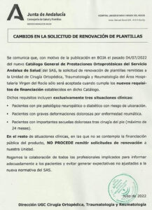 FACUA Andalucía denuncia que la Consejería de Salud deje de facilitar de forma gratuita las plantillas ortopédicas y manifiesta su temor ante una ola de recortes en materia sanitaria. FACUA Andalucía denuncia que la Consejería de Salud y Familias dejará de facilitar de forma gratuita las plantillas ortopédicas a los usuarios que las necesiten, disminuyendo su financiación a un número reducido de casos y patologías.