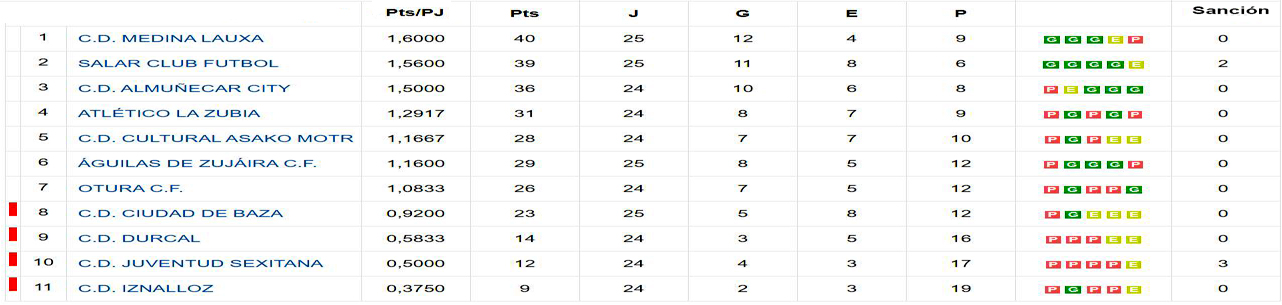 Resultados, clasificación y próxima jornada en el grupo granadino por el descenso de la Primera Andaluza Senior: