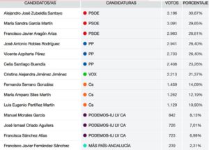 Unidas Podemos, que en Baza se identifica como Izquierda Unida, también pierde 179 votos respecto a su resultado de las pasadas elecciones, cuando logró 1.101. En este caso, la mayoría de los votos perdidos han ido a parar a Más País, de Íñigo Errejón, que logró 167 votos, casi los mismos que pierde el partido liderado por Pablo Iglesias.