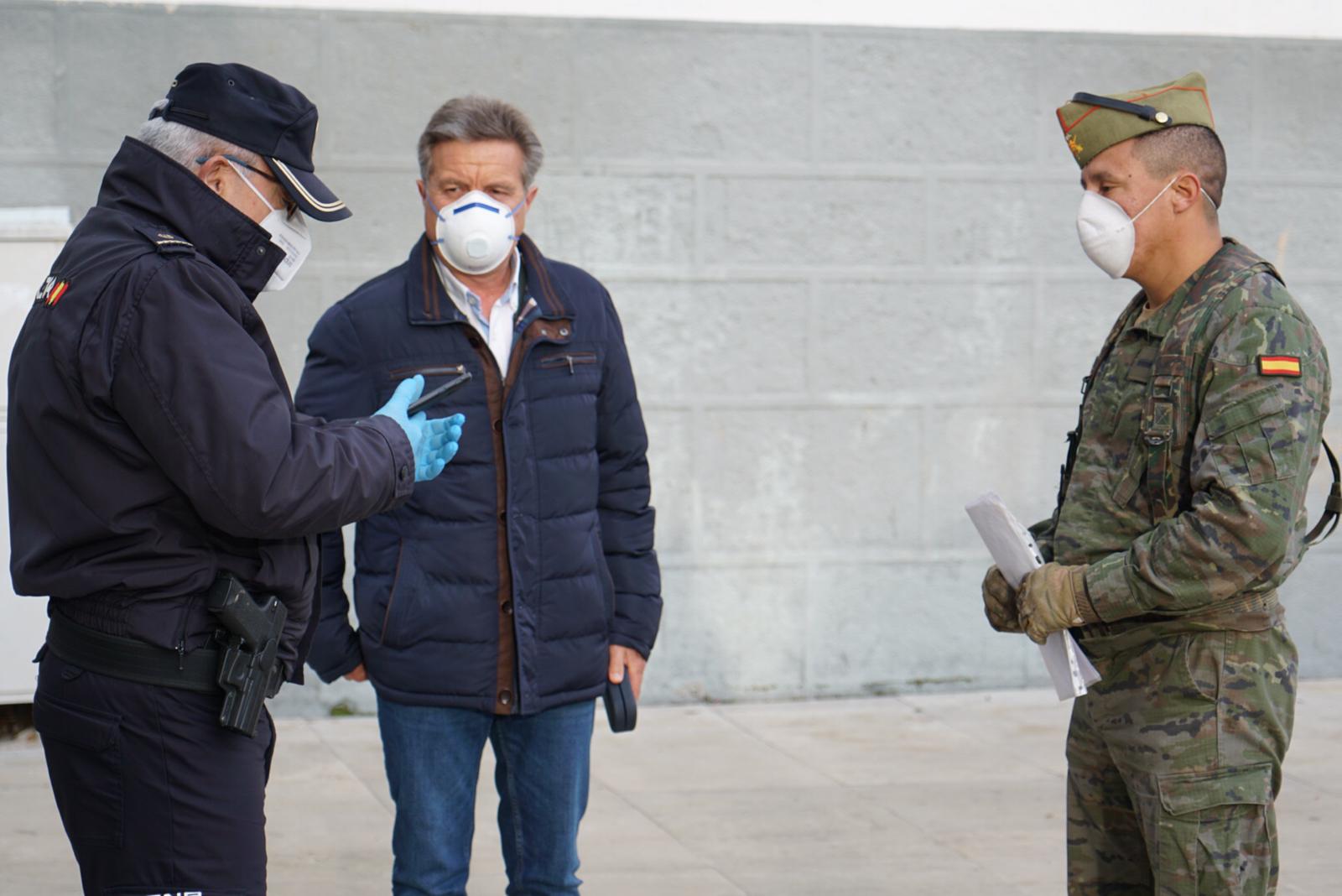 Al igual que en la jornada del día 2 de abril, el grupo de militares de La Legión llega con dos vehículos y en el marco de la operación Balmis que, a nivel nacional vigila el buen cumplimiento de las órdenes dictadas en el estado de alarma y sobre lo que podemos escuchar las declaraciones del alcalde bastetano, Pedro Fernández Peñalver: