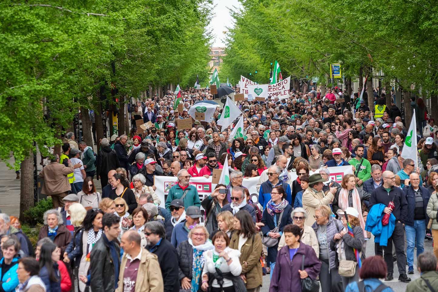 La marcha partió de los Jardines del Triunfo y recorrió el centro de la capital —Gran Vía, Reyes Católicos y Acera del Darro— hasta concluir en el Paseo del Violón, donde se dio lectura a un manifiesto en el que se denunció el deterioro del sistema sanitario andaluz. Durante el recorrido, los asistentes corearon consignas contra lo que consideran un proceso de “privatización” y un progresivo desvío de recursos hacia la sanidad privada.