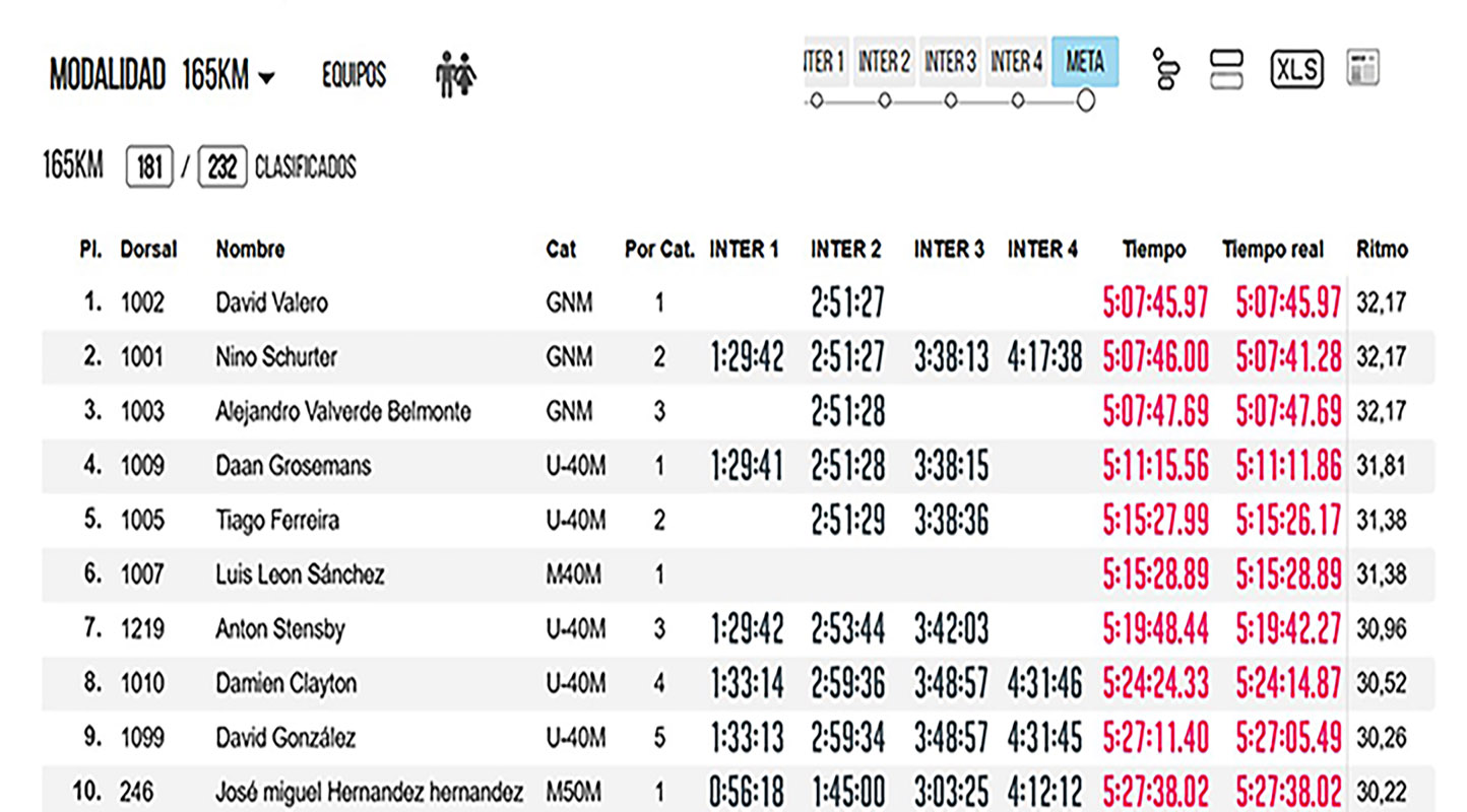 El gran protagonista de la jornada del sábado fue el bastetano David Valero, que se impuso en la prueba reina tras un emocionante sprint final frente al suizo Nino Schurter y al murciano Alejandro Valverde, firmando un podio de auténtico lujo tras 165 kilómetros y 2.800 metros de desnivel positivo.