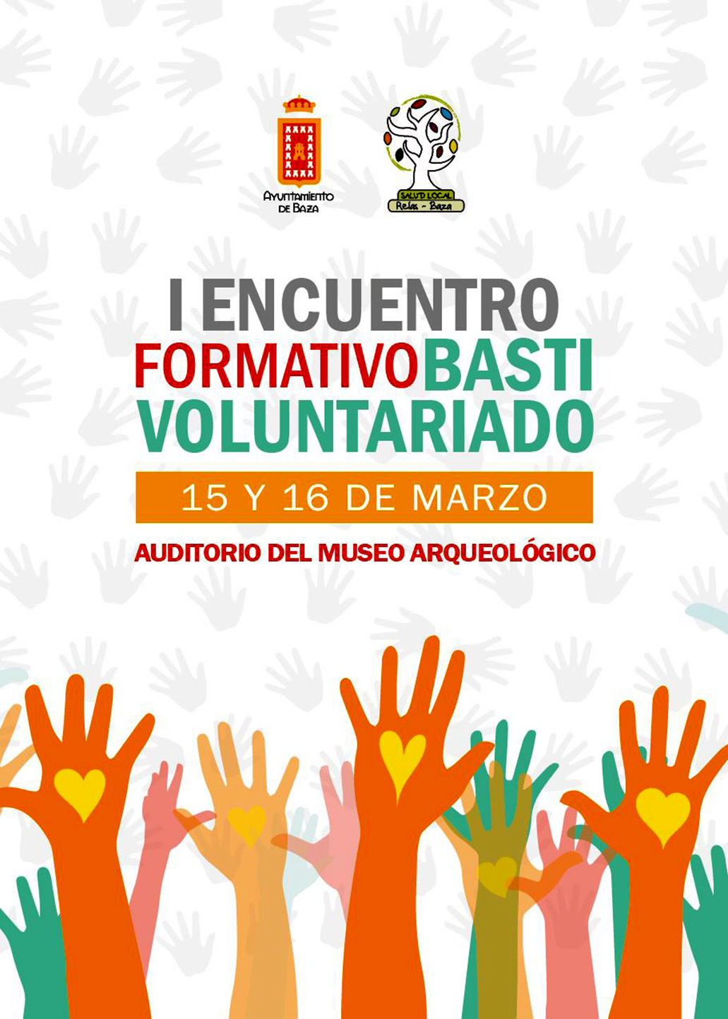 Todo listo para el I Encuentro Formativo Bastivoluntariado de los próximos 15 y 16 de marzo. El Ayuntamiento de Baza lo tiene todo listo para el I Encuentro formativo Bastivoluntariado, que se celebrará los próximos 15 y 16 de marzo en el Auditorio del Museo. Esta actividad, que surgió durante la celebración de la tradicional Plaza de la Salud del año pasado, tiene como objetivo seguir tejiendo redes y mecanismos de participación para mejorar la salud en Baza. Se favorece, además, que las asociaciones se sigan conociendo entre ellas y pongan en común sus acciones, objetivos y necesidades.