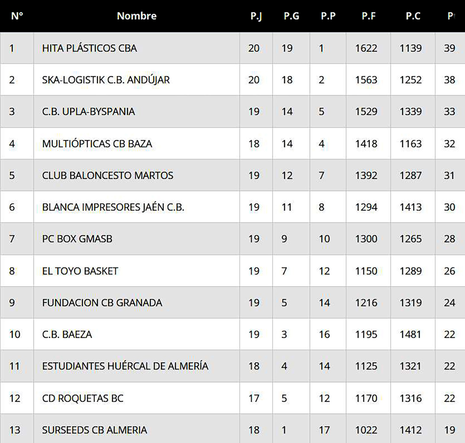 De esta forma, el CD Ciudad de Baza sigue como penúltimo clasificado, en el puesto 16, con solo 15 puntos logrados en las 22 jornadas disputadas y a seis puntos de los puestos que permiten mantener la categoría, cuando ya solo quedan ocho encuentros para cerrar la temporada liguera, empezando por visitar al Cúllar Vega, en la próxima jornada, un equipo que ocupa el octavo lugar en la clasificación y que viene de derrotar al Guadix CF, en campo accitano, por un contundente 0 a 4, a pesar de lo cual el equipo bastetano saldrá a competir en busca del mejor resultado.