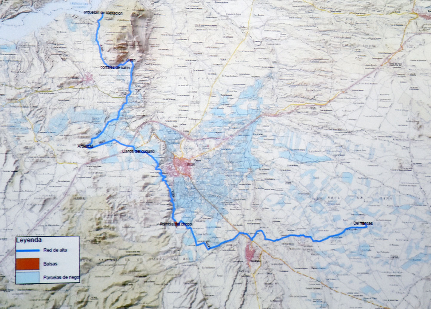 Las comunidades de regantes de la comarca de Baza presentan el proyecto hidráulico y fotovoltaico para el abastecimiento común de su regadío desde el Canal de Jabalcón. Las comunidades de regantes de la comarca de Baza, beneficiarias de los 18,5 hm3 para riego desde el embalse del Negratín que contempla el Plan Hidrológico del Guadalquivir, presentaron el pasado viernes los proyectos hidráulico y fotovoltaico para el abastecimiento común. Se trata de una infraestructura en alta que dará servicio a las distintas comunidades de regantes de la comarca.