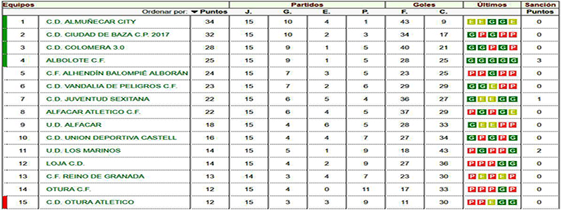 El CD Baza se dejaba el liderato en su visita a Almuñécar tras perder en su visita a la UD Los Marinos. Nueva derrota del equipo bastetano que le hacía dejarse en Almuñécar los tres puntos y el primer puesto en la tabla, resultando favorecidos la UD Los Marinos que se quedó con los tres puntos en juego tras vencer por 4 a 3 y el CD Almuñécar City que recuperaba la condición de líder en la tabla clasificatoria.