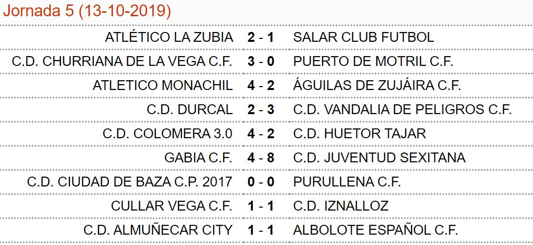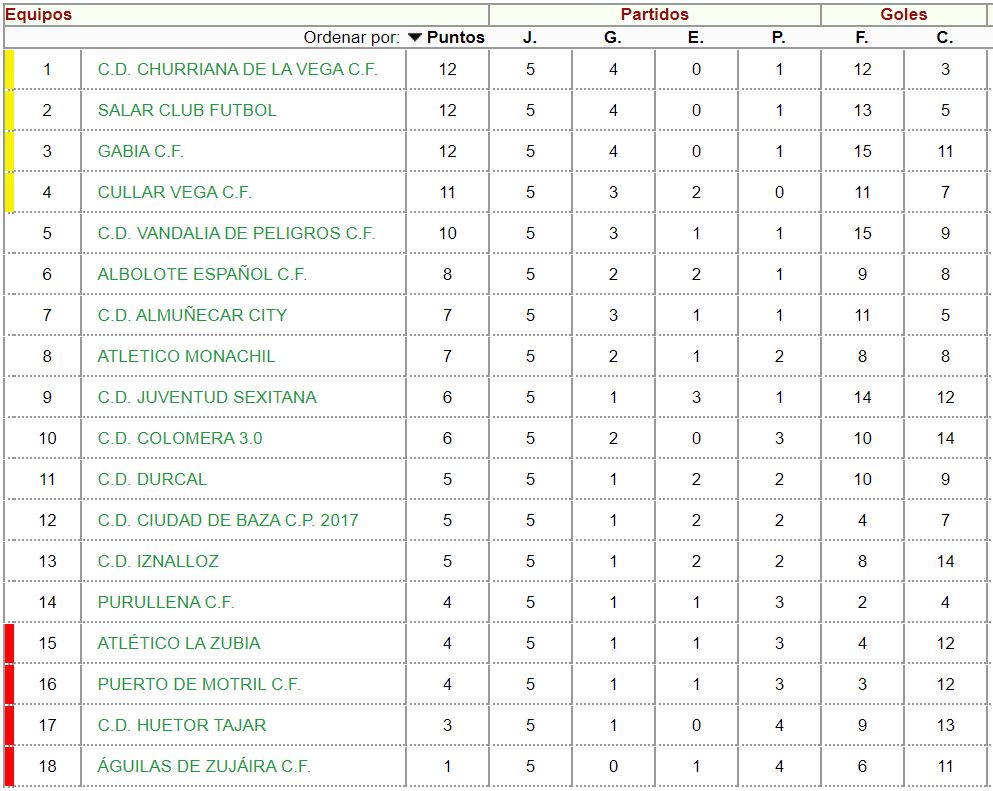 Resultados y clasificación tras la jornada 5 en el grupo granadino de la Primera Andaluza: