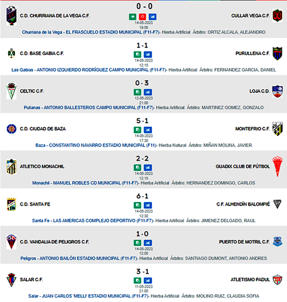 Resultados y clasificación tras la penúltima jornada del grupo granadino de la Liga de la Primera Andaluza Senior: (Clicar en las imágenes para ampliar).