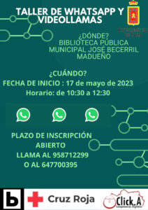 El primero de ellos se desarrollará el día 17 de mayo en horario de 10.30 a 12.30 h. y se centrará en el uso de WhatsApp y videollamadas; es un taller dirigido a personas que aún no tienen manejo de esta aplicación, para que aprendan a usarla “y facilitarles el contacto con otras personas, por ejemplo, con sus seres queridos”. En fechas posteriores se irán realizando otros talleres con otras temáticas. Para participar, hay que inscribirse en la Biblioteca.