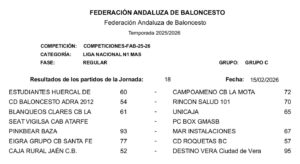 Resultados y clasificación tras la última jornada en la Primera Andaluza Nacional de Baloncesto. Clicar en las imágenes para ampliarlas: