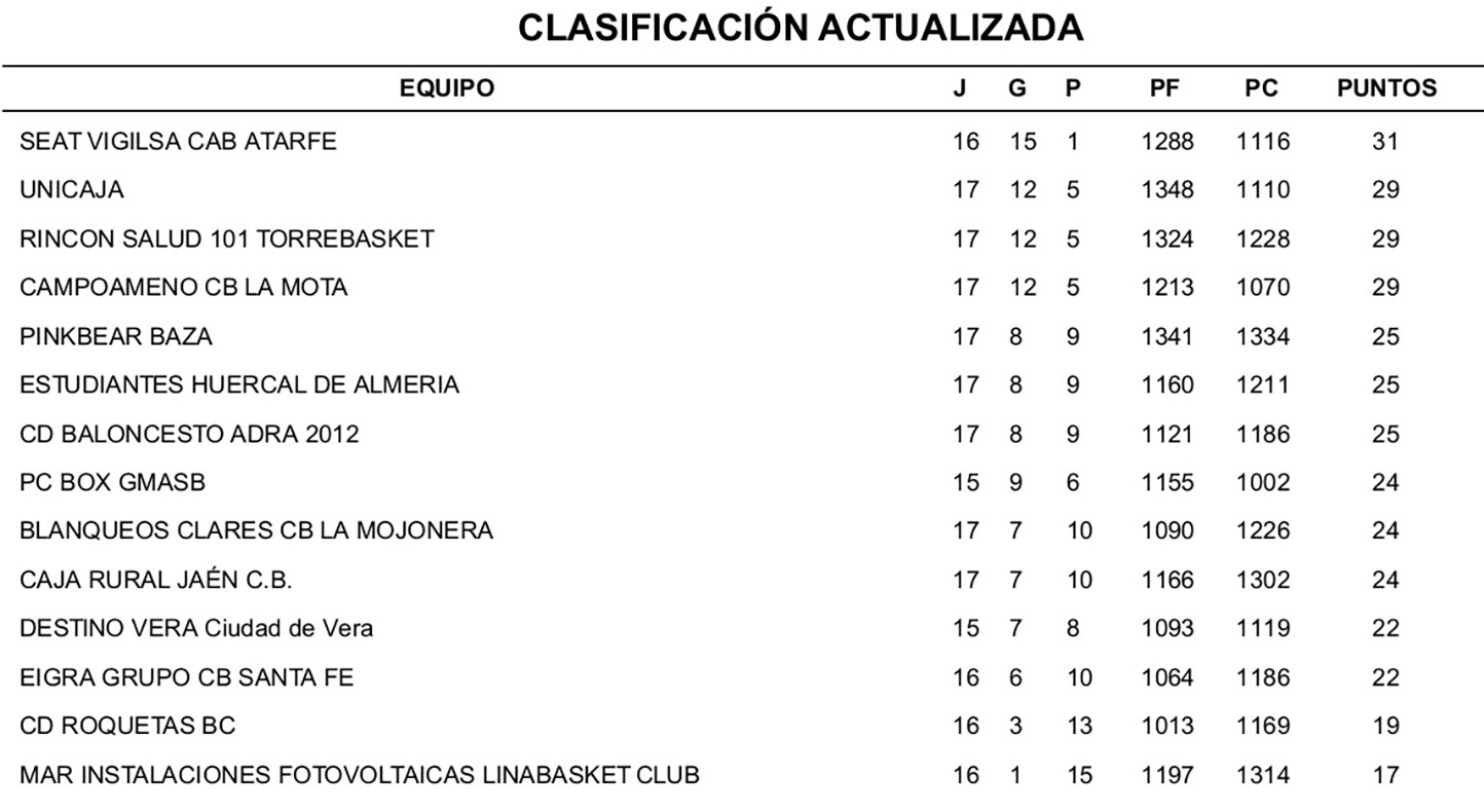 Resultados y clasificación tras la última jornada en la Primera Andaluza Nacional de Baloncesto. Clicar en las imágenes para ampliarlas: