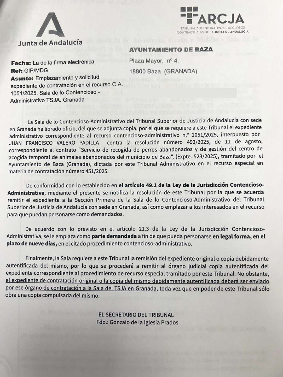 Como ejemplo reciente, mencionan el recurso contencioso-administrativo presentado por un concejal del PSOE en relación con la contratación del servicio de recogida de animales abandonados y la gestión del centro de acogida temporal del municipio, procedimiento que fue desestimado por la Justicia, con imposición de costas, al no apreciarse argumentos suficientes para sustentar la impugnación.