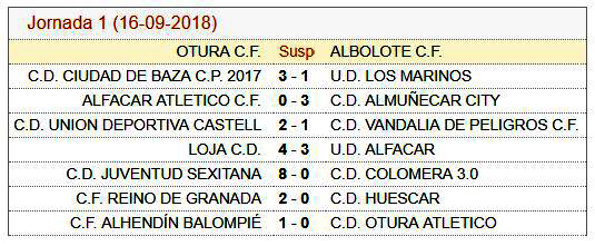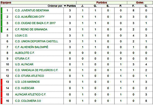 Resultados y clasificación tras la jornada 1 de la Liga Senior en la Segunda Andaluza de Granada:
