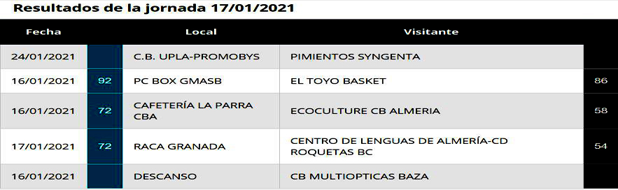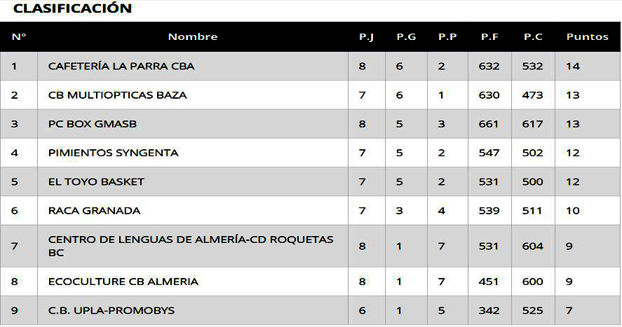 El Multiópticas Baza cede el liderato en su jornada de descanso. Una jornada en la que tocó descansar al equipo bastetano y de la que ofrecemos los resultados habidos, así como la clasificación y los encuentros fijados para el próximo fin de semana: