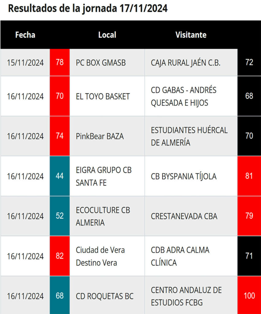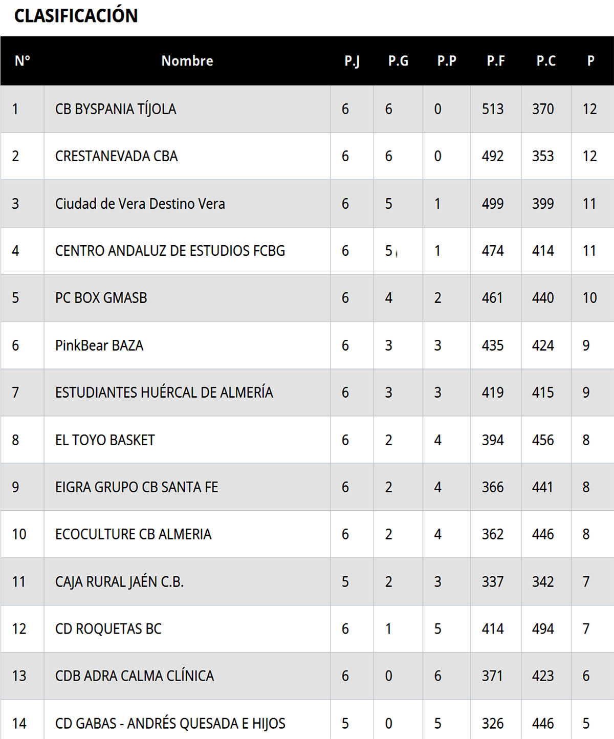 Resultados y clasificación tras la sexta jornada en el Grupo C de la Primera Nacional de Baloncesto. (Clicar en las imágenes para ampliarlas):