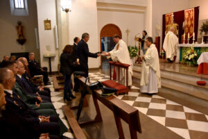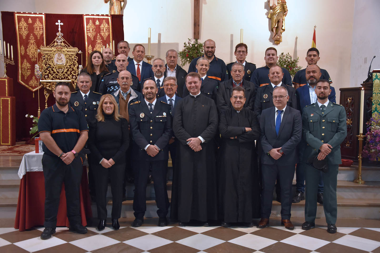 Los actos comenzaron en la iglesia de Santiago, donde los párrocos Sergio Villalba y Manuel Millán oficiaron una misa en honor a la Policía Local. Tras la ceremonia religiosa, los asistentes se trasladaron a la jefatura de Policía para continuar la celebración en un acto oficial que incluyó la interpretación de los himnos de Andalucía y de España.