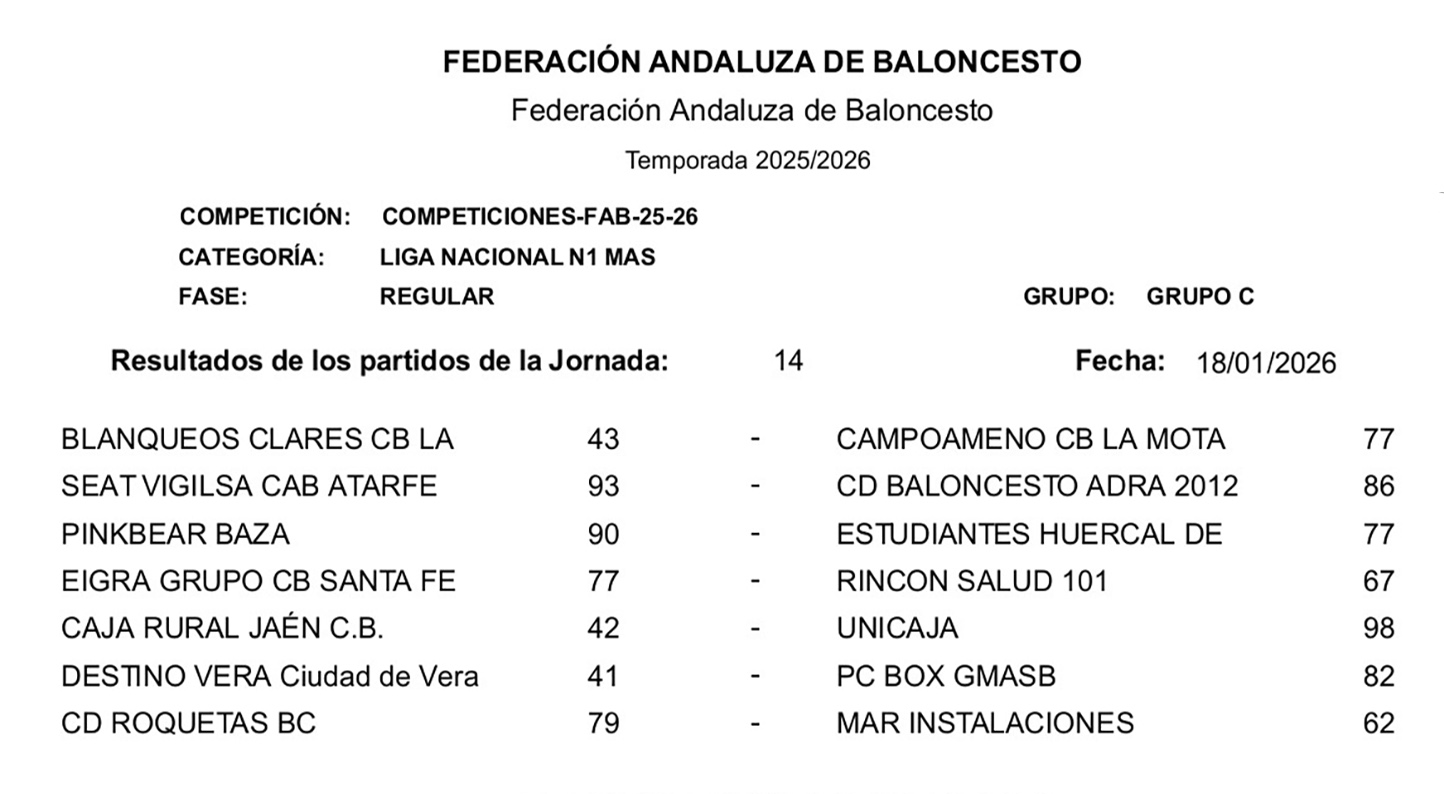 Resultados y clasificación, tras la última jornada del Grupo C de la Primera Nacional Andaluza de Baloncesto. (Clicar en las imágenes para agrandarlas):