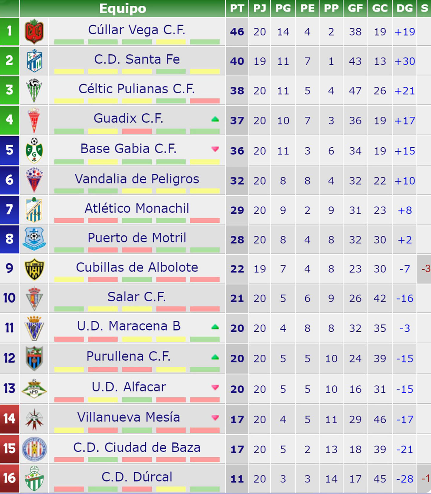 Resultados y clasificación en el grupo granadino de la Primera Andaluza Sénior de Fútbol (Clicar en las imágenes para ampliarlas):