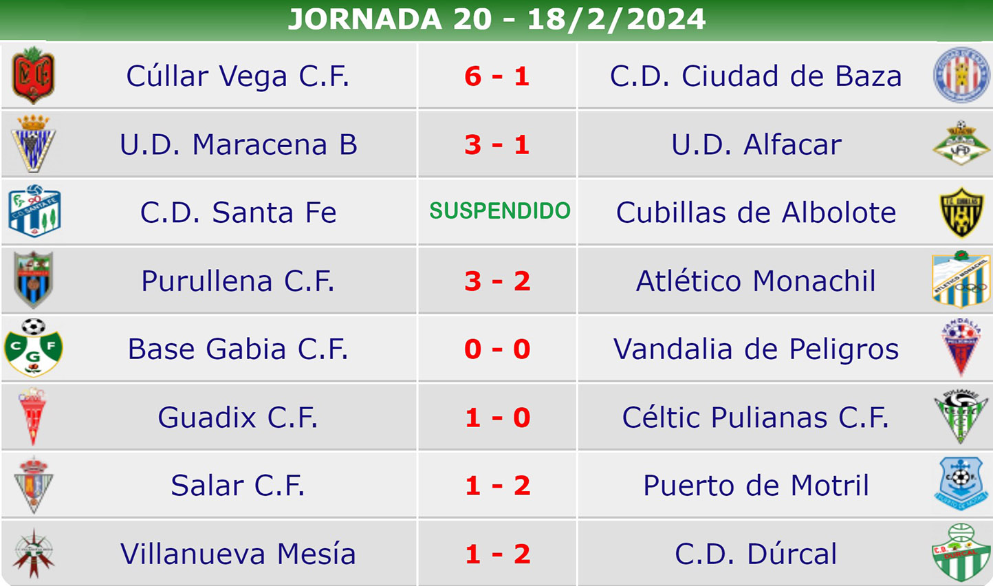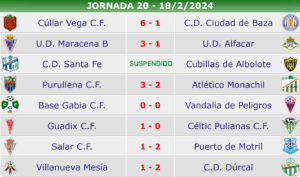 Importante dejar constancia, por la influencia que puede tener en los puestos de descenso, la incomparecencia del Cubillas en el campo del Santa Fe, que supone ya la segunda ocasión en que no se ha presentado este equipo, lo que podría desembocar en serios problemas que incluso apuntarían a su descalificación y a reconsiderar los resultados habidos en los encuentros disputados frente a este equipo. Habrá que esperar, pues.