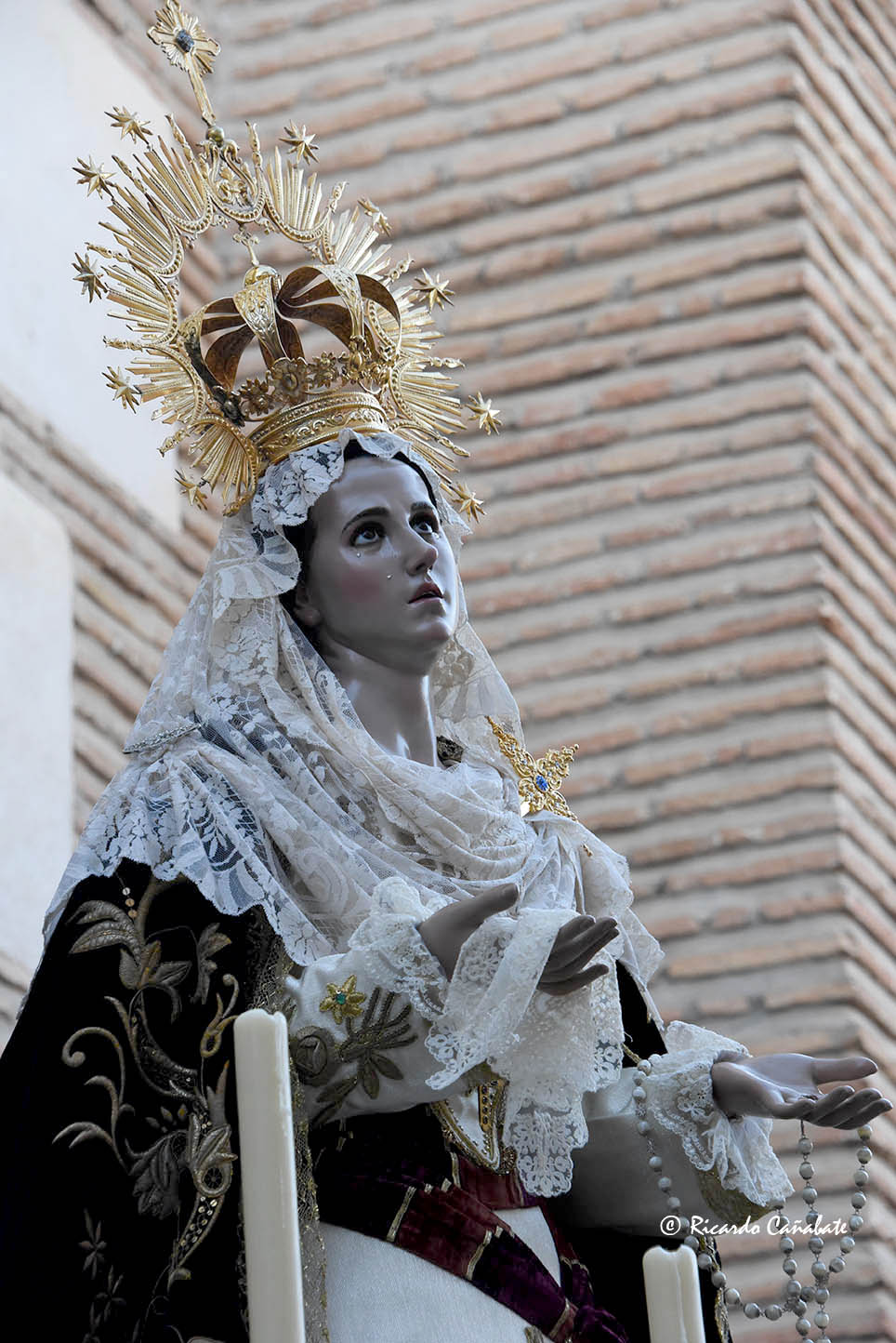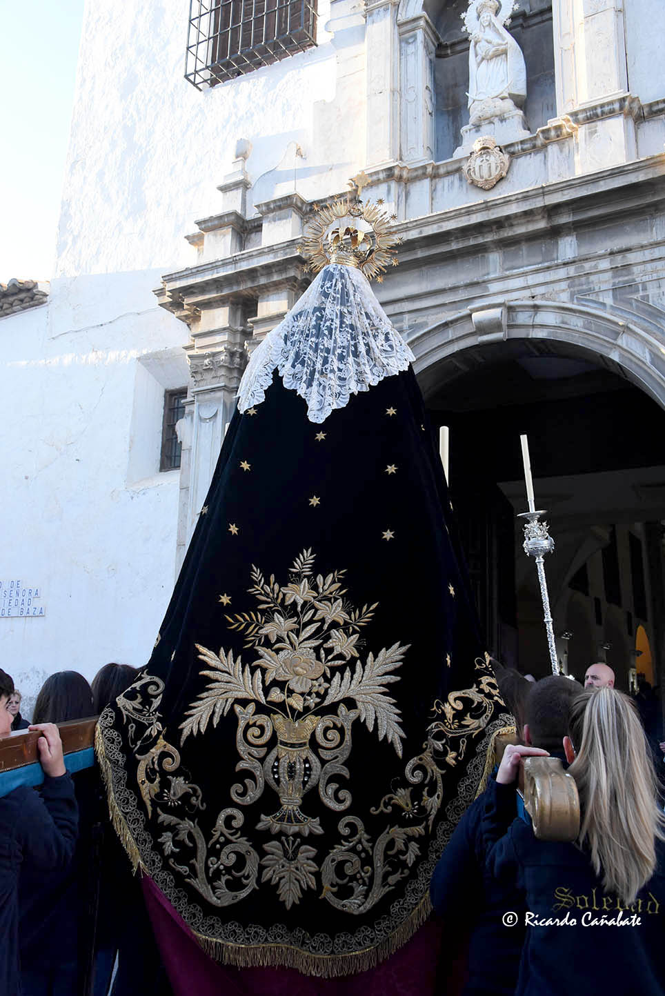 La Cofradía de la Soledad celebraba el pasado sábado el retorno de la imagen de su Titular Mariana tras el proceso de restauración a que ha sido sometida. A las cinco y cuarto del pasado sábado se abrían las puertas de la Iglesia de San Juan Bautista, para visitar y venerar a la sagrada imagen de la Virgen de la Soledad, que ese mismo día volvía a Baza, tras haber sido sometida a un proceso de restauración.