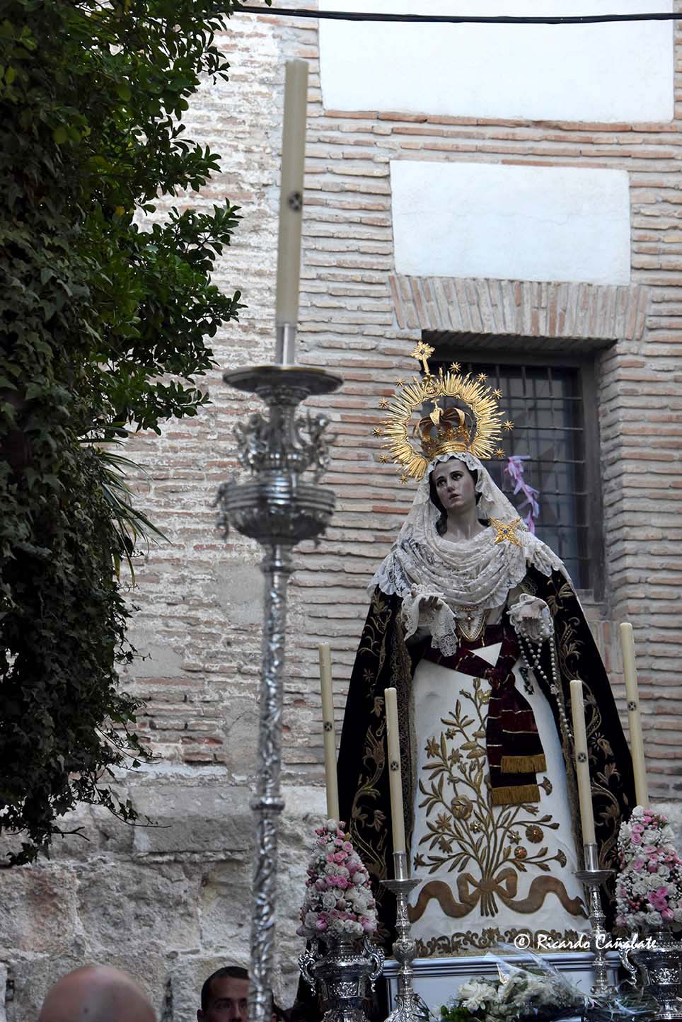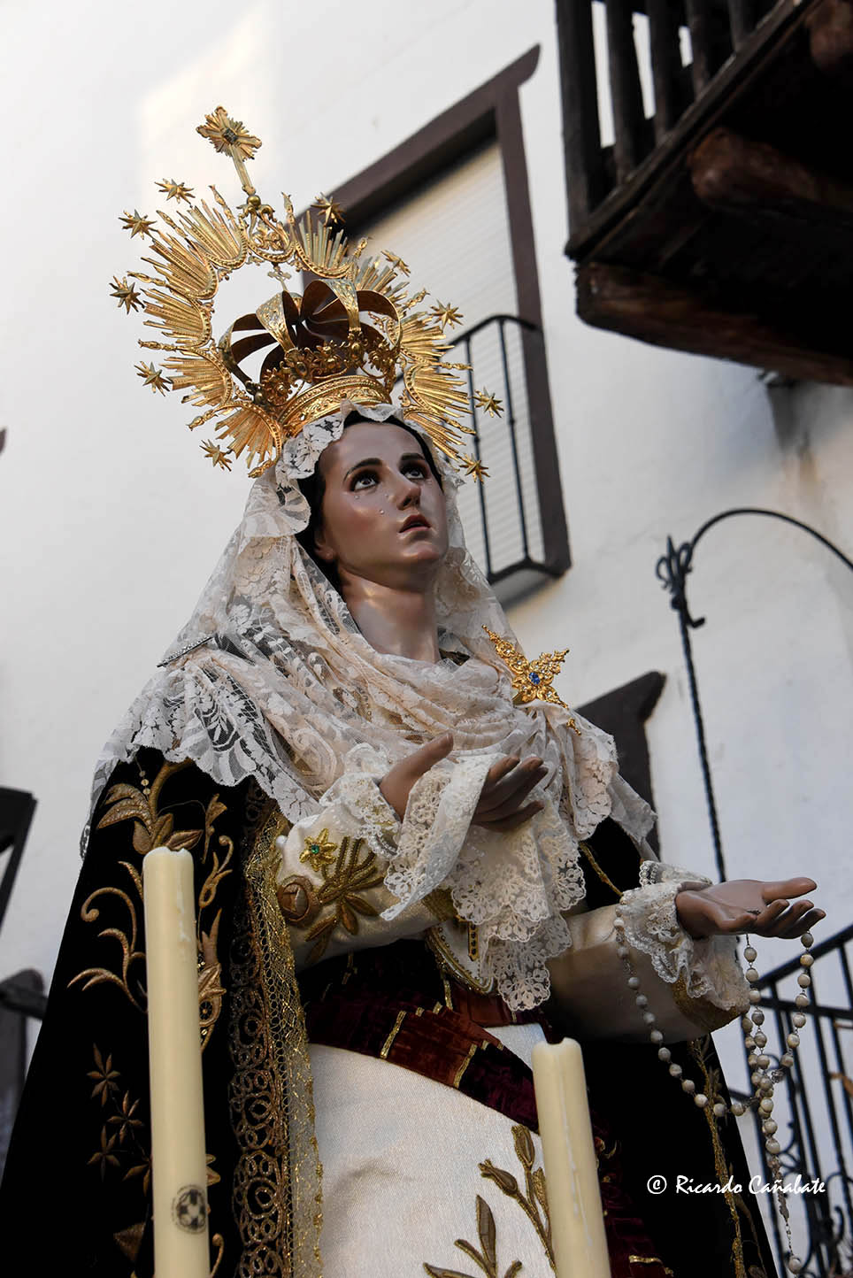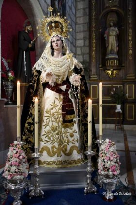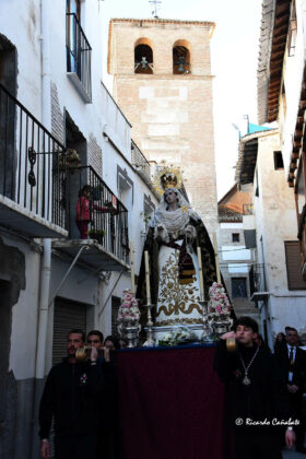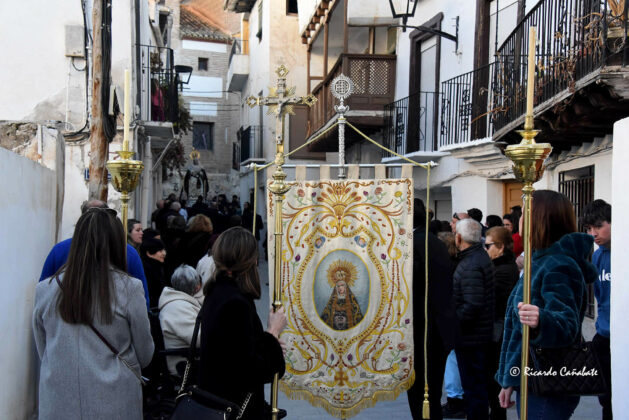 Unos minutos después, se formó una comitiva para procesionar y trasladarla hasta la Iglesia de Nuestra Señora de la Piedad, donde tiene su sede, acompañada por numerosas personas, entre las que destacaban los miembros de la cofradía de la que es titular.