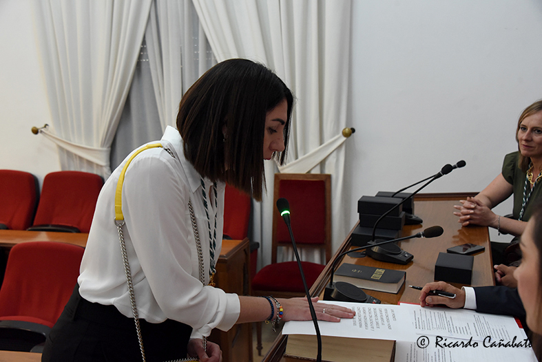 El ya proclamado alcalde, hizo la promesa referida a su nuevo cargo y recibió de su antecesor la medalla acreditativa de su nueva condición y el simbólico bastón o vara de mando, lo que fue seguido de la constitución de la mesa bajo la presidencia del nuevo alcalde, quien cedió el uso de la palabra al resto de corporativos, conforme relatamos seguidamente, tras lo que se levantó la sesión.