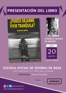 La Escuela Oficial de Idiomas ofrece mañana la presentación del libro “¿Podéis dejarme vivir tranquila”. Una presentación que supone también un reencuentro con su autora, Verónica Guinea, quien fuera la primera Jefa de Estudios de la Escuela Oficial de Idiomas de Baza, donde impartió clases de francés con éxito durante cinco cursos escolares y que esta vez se nos presenta como autora de esta obra.