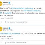 Tanto el aviso de incendio como la paralización de la actuación que se había puesto en marcha fueron advertidos por el Plan Infoca, a través de su web en Twitter, aunque fue algo que no evitó la activación de un dispositivo, tanto aéreo como terrestre, que constaba de 20 bomberos forestales, un técnico de operaciones, dos agentes de medio ambiente, un camión autobomba y un helicóptero de transporte y extinción, MA-40.