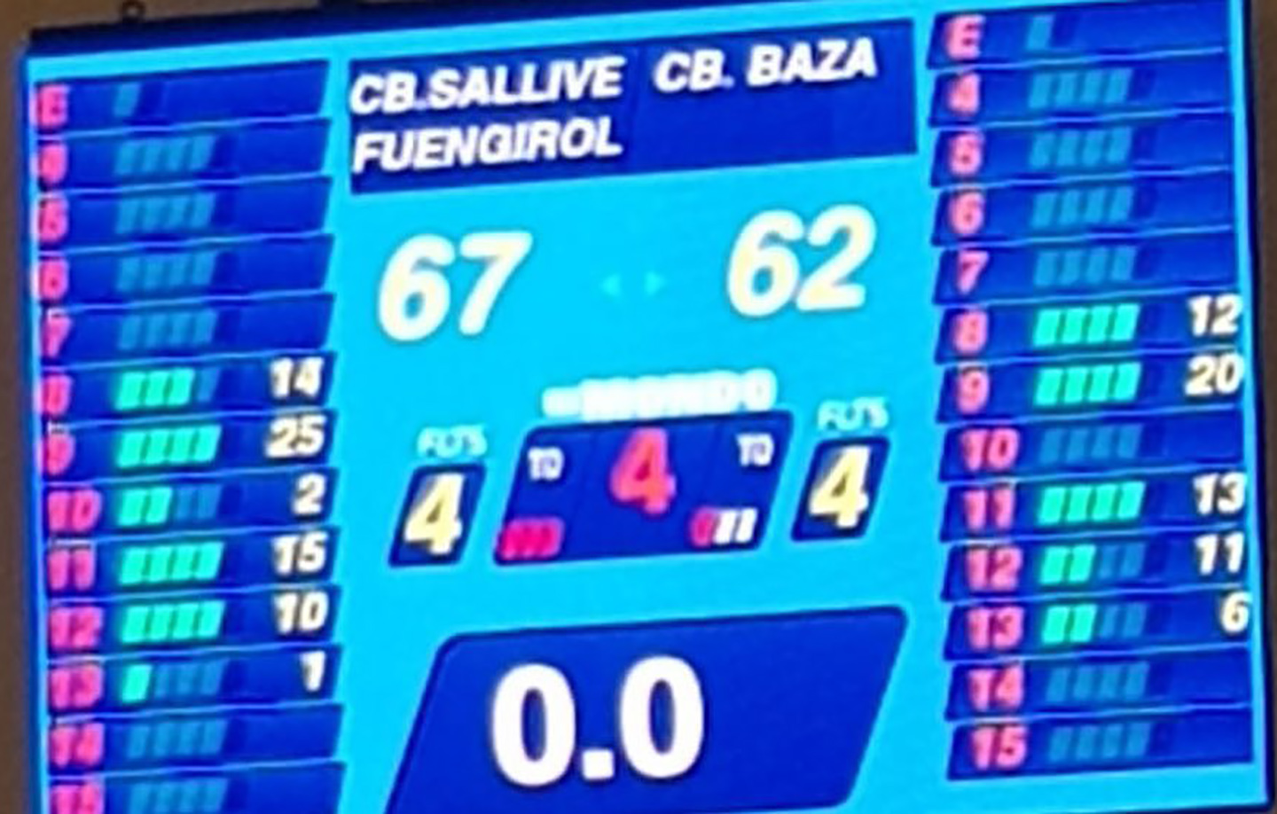 Partido amistoso pero reñido el disputado por el CB Baza en Fuengirola. Encuentro de presentación del CB Salliveri Fuengirola, disputado en el Pabellón “Juanito” con un juego muy reñido y que acabó con una ajustasa victoria local por 67 a 62.