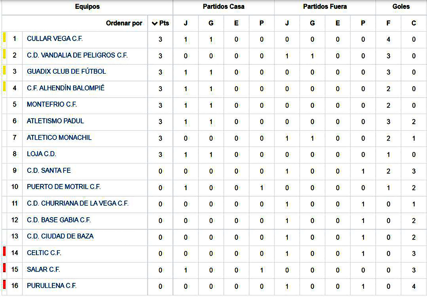 Clasificación tras la primera jornada en el grupo granadino de la Primera Andaluza Sénior: