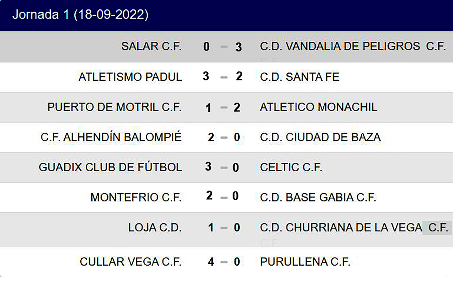 Resultados de la 1ª jornada en el grupo granadino de la Primera Andaluza Sénior: