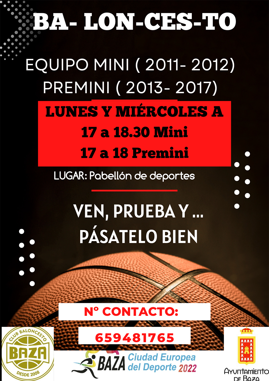 Horarios de temporada para los equipos de la cantera del CB Baza. Poco a poco se van poniendo en marcha las diferentes competiciones deportivas, cuando ahora se acerca el turno del baloncesto en el que se cuenta con una interesante cantera najo el paraguas del CB Baza, que se dispone a iniciar los entrenamientos, los cuales se desarrollarán on los siguientes horarios para cada categoría: