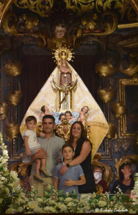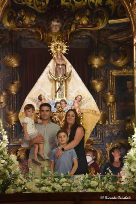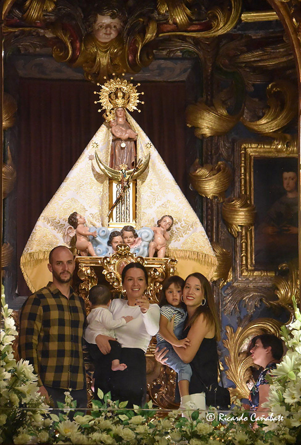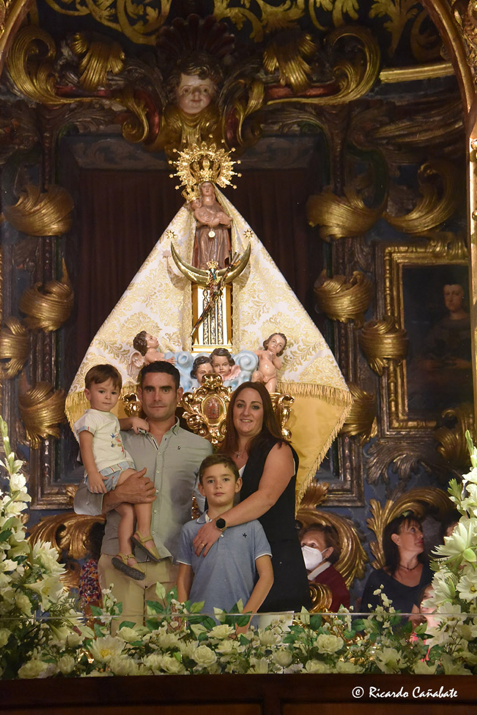 Tras rociar con agua bendita la cabeza de cada uno de estos pequeños, el Padre Emilio procedió al rezo de una oración conjunta para, seguidamente, facilitar el acceso de pequeños y mayores al camarín de la Patrona bastetana, por donde fueron desfilando todos y cada uno de los grupos familiares, teniendo ante sí a la Virgen, a muy poca distancia, a la par que iban inmortalizando el momento con fotografías que recordarán para siempre ese momento.