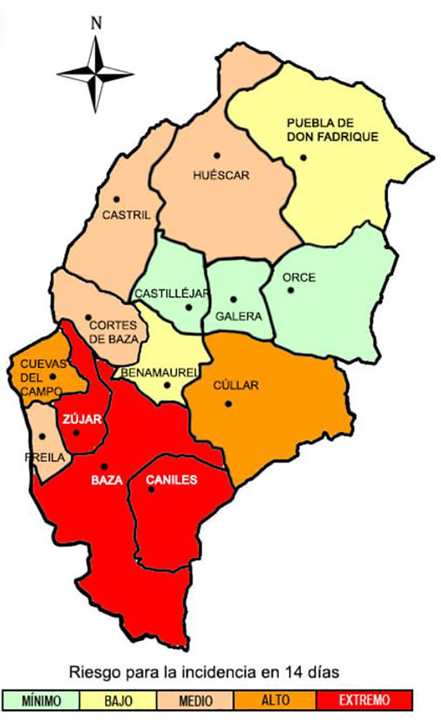 A destacar también el caso de Freila, un municipio que llevaba ya varias semanas con su tasa de incidencia a cero y con la totalidad de los contagiados ya dados de alta y que, sin embargo, ese único contagio viene a trastocar toda la situación, pues mientras que en Baza significaría un aumento de 4,9 casos en la tasa de incidencia, en Freila supone dispararse a una tasa de 106,5 casos.