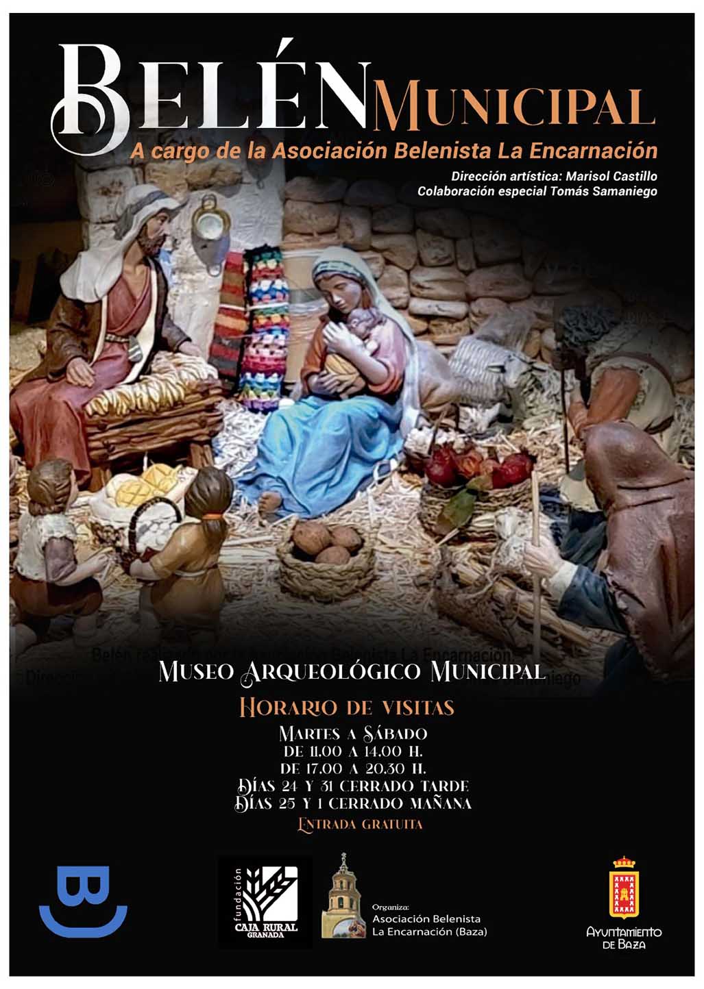 El alumbrado extraordinario de Navidad y el Belén Municipal en el patio del Museo Arqueológico también se inaugurarán esa misma tarde. El mismo día de la víspera del 4 de diciembre, día de la Patrona de Baza, Santa Bárbara, y fiesta local, tendrá lugar también la inauguración oficial del Belén Municipal instalado en el patio del Museo Arqueológico Municipal y que han construido, una vez más, los miembros de la asociación belenista “La Encarnación”.