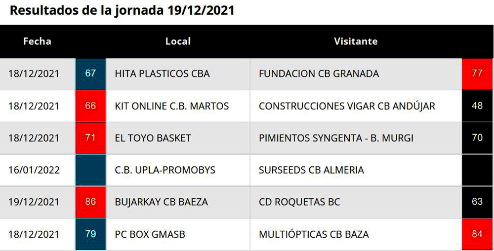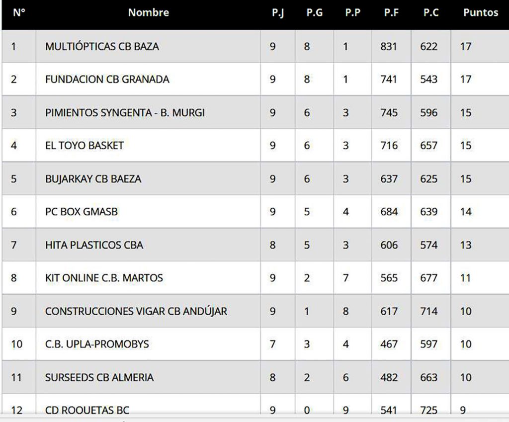 Resultados y clasificación tras la última jornada en el grupo B de la Primera Nacional de Baloncesto (clicar en las imágenes para aumentar su tamaño):