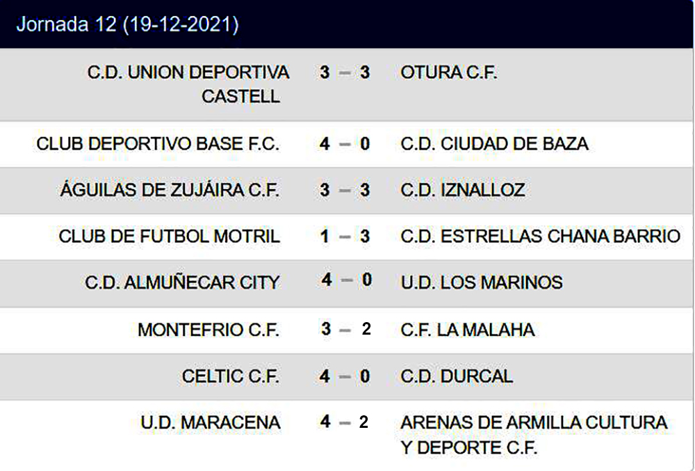 Resultados y clasificación tras la última jornada en el grupo granadino de la Segunda Andaluza Senior de Fútbol ç(clicar en las imágenes para aumentar su tamaño):