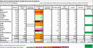 También Cúllar sumaba otros 2 casos, aumentando en uno la cifra total de PDIA confirmados, que se pone en 7 y la tasa de incidencia a 14 días que sube a 171,1 casos por 100.000 habitantes, mientras que baja en 2 casos la de 7 días, dejándola en 3 y descendiendo esta tasa de incidencia hasta 73,3.