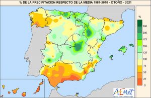 El balance climático y predicción estacional hacen referencia a un otoño seco que afianza la sequía meteorológica en el sur y nordeste peninsular. La Agencia Estatal de Meteorología (AEMET), dependiente del Ministerio para la Transición Ecológica y el Reto Demográfico, ha hecho público su avance climático del otoño de 2021, que tuvo un carácter seco en cuanto a precipitaciones y normal en lo que a temperaturas se refiere en el conjunto de España.