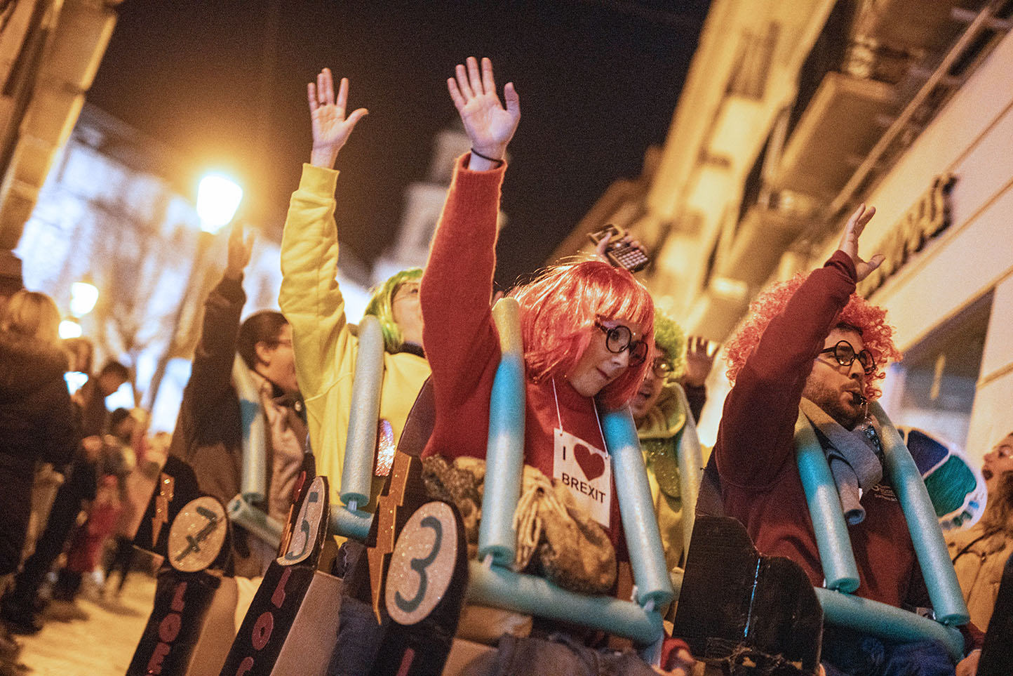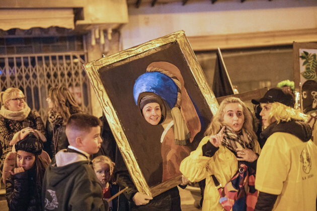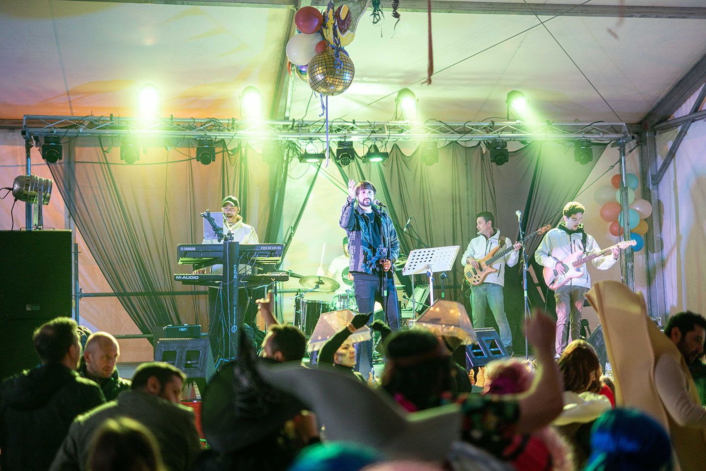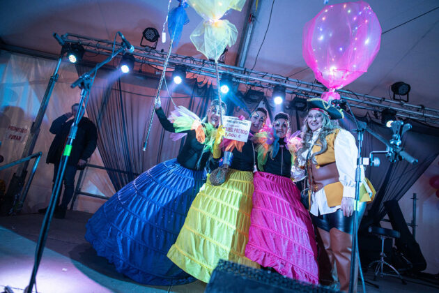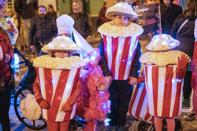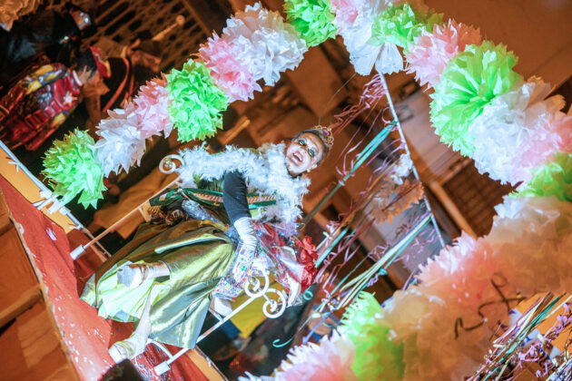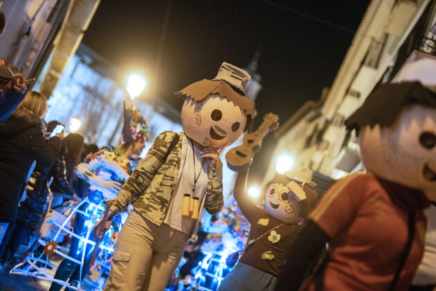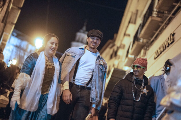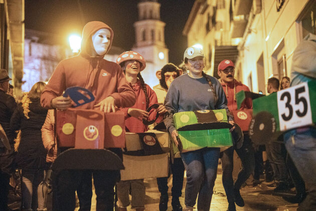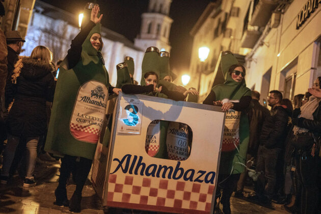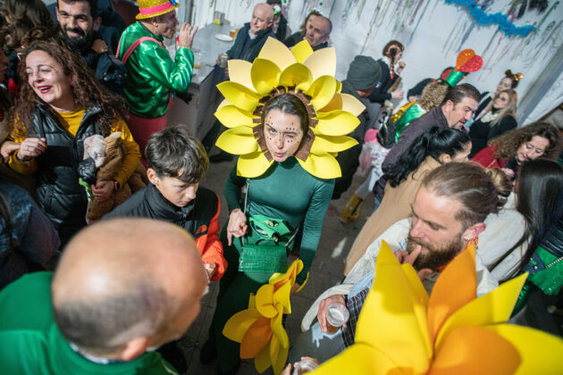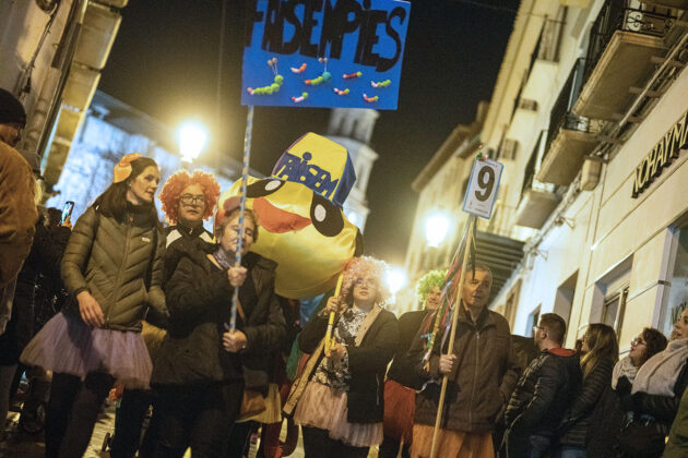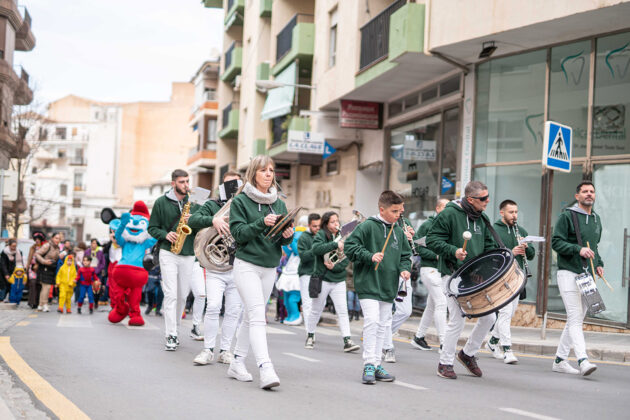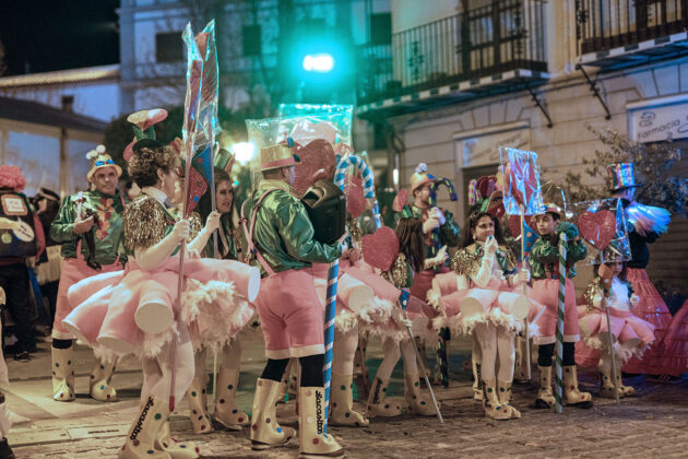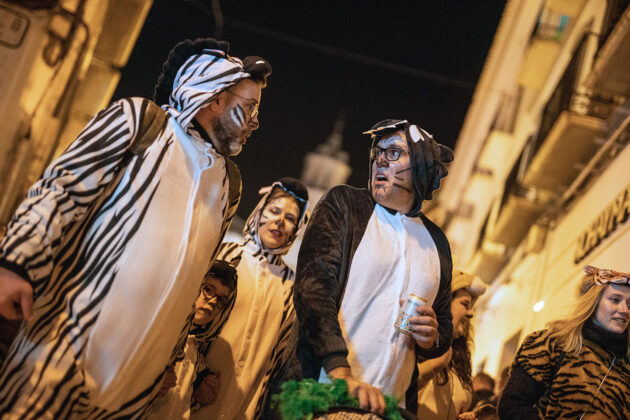 Posteriormente, a primera hora de la noche del mismo sábado, la cita fijada convocaba a los carnavaleros adultos, quienes acudieron en muy buen número a la misma carpa, realizaron su desfile con un recorrido por las calles céntricas de la ciudad y asistieron a la fiesta organizada para esta cita, con un ambiente increíble en la carpa, donde la música la pusieron el grupo local “Apaga y vámonos” y los almerienses “Los Vinilos”.