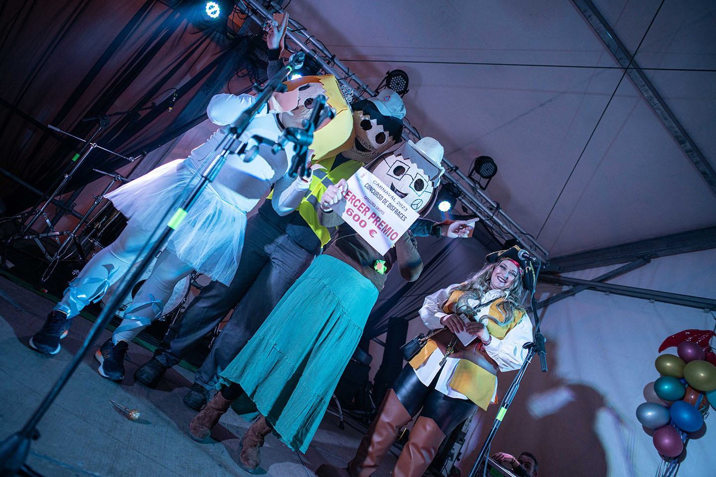 La numerosa participación, con más de cuatrocientas personas inscritas para el concurso de disfraces, dio bastante trabajo al jurado encargado de decidir los premios de este concurso, ante las numerosas opciones entre las que evaluar quienes serían los galardonados, algo que recayó en las siguientes personas y grupos: