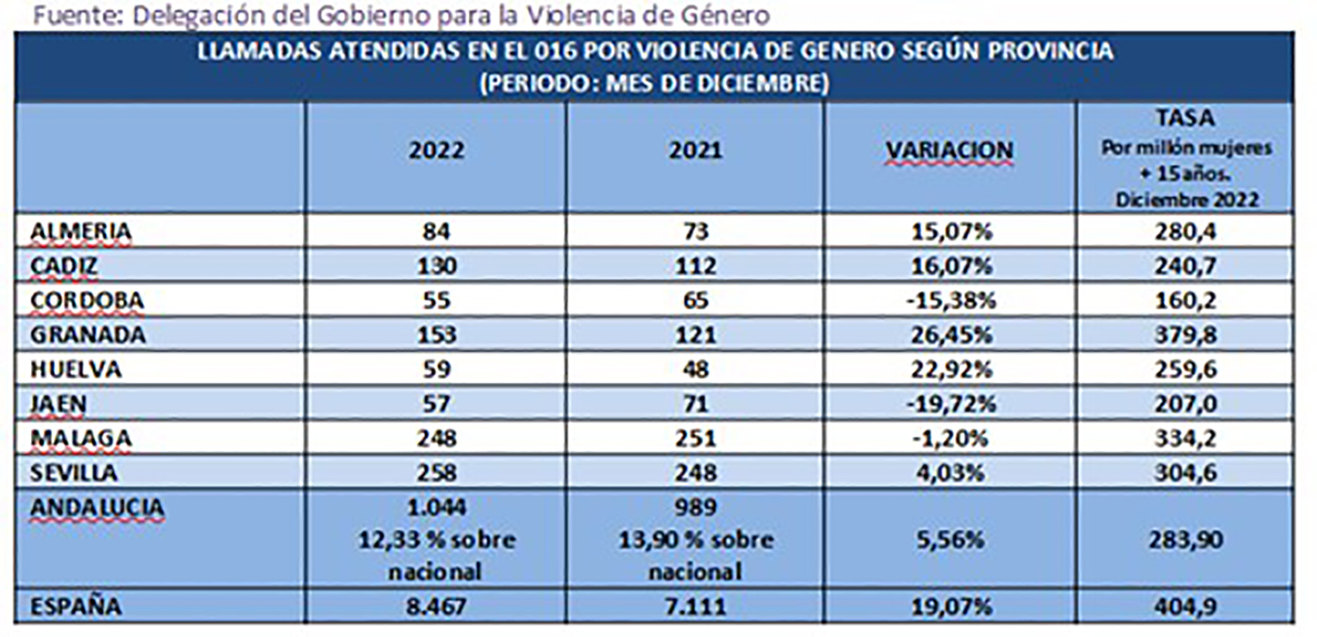 Andalucía cerró 2022 con 1.148 pulseras de alejamiento, un 15% más que el año anterior. Andalucía cerró 2022 con 20.571 casos de violencia machista registrados en el Sistema de seguimiento integral de casos de violencia de género, Sistema VioGén, según se desprende del informe estadístico elaborado por la Unidad de Coordinación contra la Violencia de Género de la Delegación del Gobierno de España en Andalucía correspondiente al mes de diciembre, fecha en la que se contabilizaban 1.148 pulseras de protección y alejamiento activas por los Juzgados de Violencia de Género, el 37,5% del total nacional, que se sitúa en 3.056 dispositivos, y un 15% más que en el mismo mes de 2021.